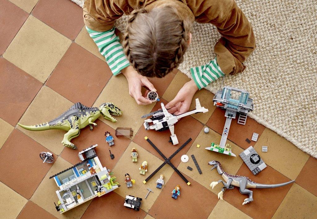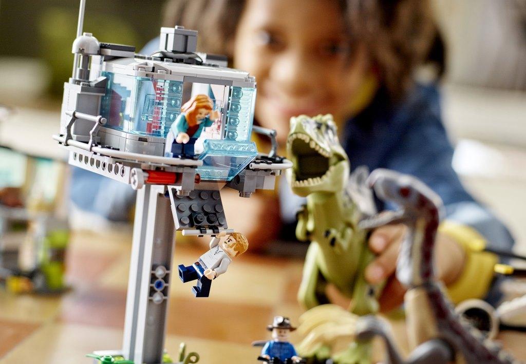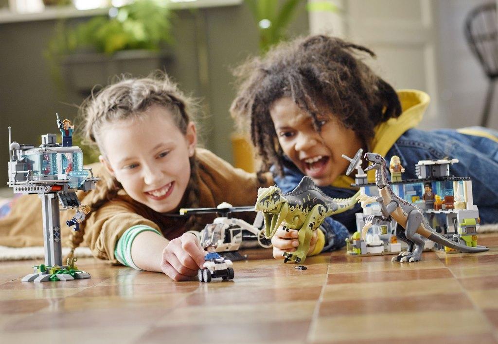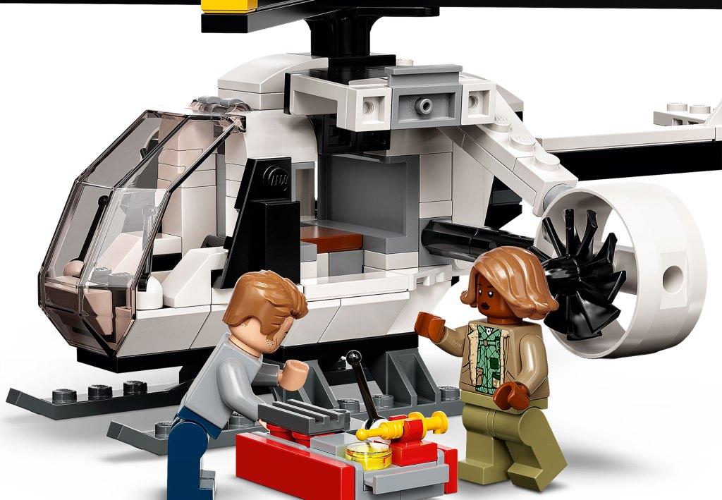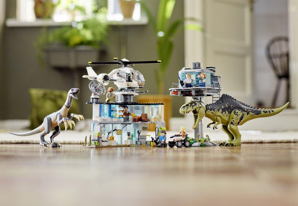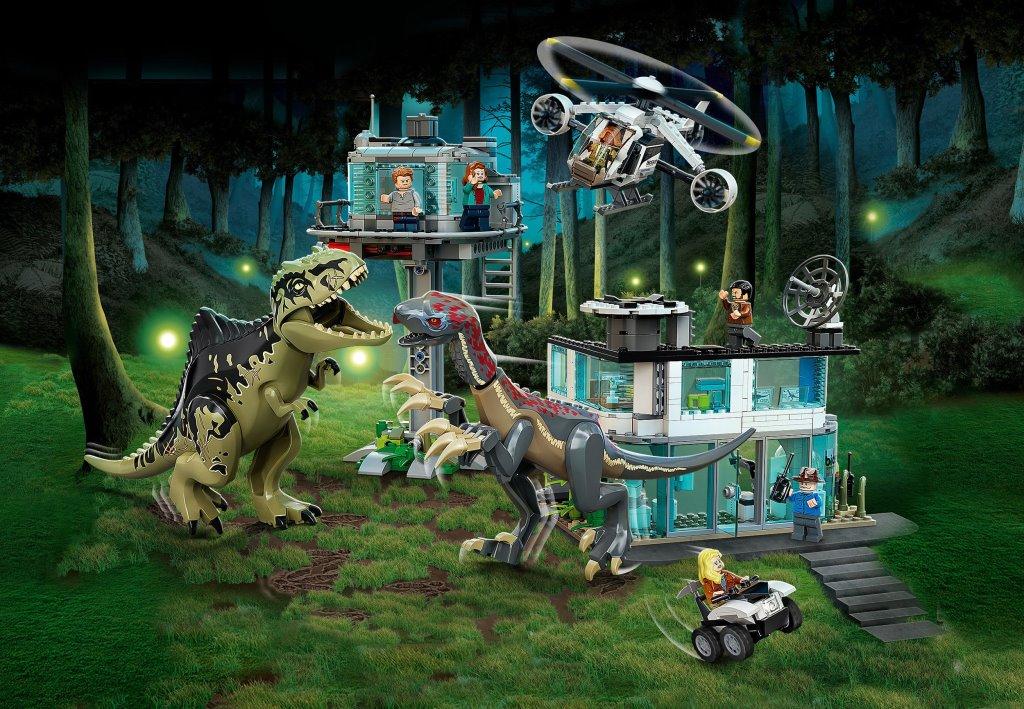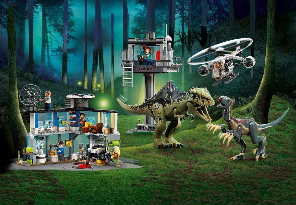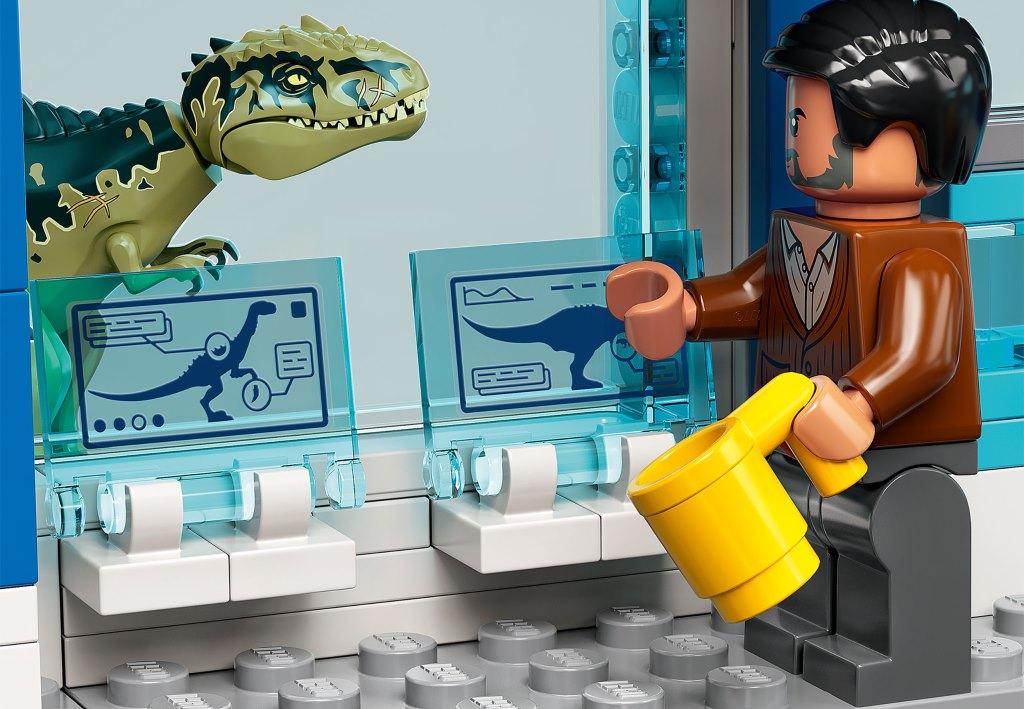 Собери исследовательский центр, а также двух хищных ископаемых ящеров — гиганотозавра и теризинозавра. Разыгрывай сцены фильма о приключениях в духе Юрского периода. В нашем магазине можно купить и собрать двух самых страшных ящеров кинематографа. Конструктор “Атака гиганотозавра и теризинозавра” создан по мотивам нового фильма “Доминион Мира Юрского периода”. Здесь есть популярные персонажи фильма, сборные фигурки динозавров, командный центр с лабораторией, крутой транспорт. С набором Юрского периода ты сможешь разыгрывать сцены из фильма и придумывать новые эпизоды. Гиганотозавр зелено-черного цвета, на его спине черные гребни. Благодаря шарнирам у него подвижная шея, хвост, ноги и верхние конечности, открывается нижняя челюсть. У серого со светлым животом теризинозавра длинные ноги и хвост, есть клюв и большие когти. На первом этаже штаб-квартиры исследователей в серии Jurassic World размещена лаборатория и гараж для багги. На втором этаже — офис. На крыше — вертолетная площадка и спутниковая тарелка. У располагающейся рядом смотровой башни есть функция складывающейся платформы. В набор входят вертолет и вездеходный багги. В наборе шесть минифигурок. Зоопсихолог Оуэн Грейди в сером свитере и синих штанах с ремнем. Палеонтолог Алан Грант в синей рубашке, серых штанах и ковбойской шляпе. Главная защитница динозавров Клэр Диринг в Lego 76949 Атака гиганотозавра одета в бордовую футболку, синие штаны и бирюзовый жакет. Генри Ву, главный специалист по генетике, в серой рубашке, серых штанах и коричневом джемпере. Палеоботаник Элли Сэтлер в оранжевой рубашке, под которой серая футболка, и штанах цвета хаки. Кайла Уоттс, женщина-пилот, в форме военно-воздушных сил. Размеры: штаб-квартира — 16×21×16 см; смотровая башня — высота 20 см; гиганотозавр — длина 32 см.