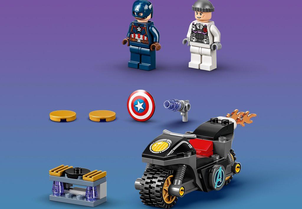 Битва Капитана Америка с Гидрой уже началась. Помоги супергерою победить коварного врага. Не дай уйти Гидре — преследуй на мотоцикле, продолжай погоню в воздухе и на воде. Помни, для тебя нет препятствий! Ведь ты — борец за правду. А добро всегда должно побеждать зло. И именно поэтому враг будет повержен любым путем. В набор входит суперскоростной мотоцикл, функциональность которого зависит исключительно от твоей фантазии. Хочешь, он будет летать — и вот двухколесное чудо техники уже огибает пушистые облака. Нужно, чтобы мотоцикл продолжил погоню под водой? Нет ничего невозможного — включай воображение, объезжай разноцветные кораллы прямо по морскому дну, заручись поддержкой акул и осьминогов, догони Гидру и навсегда избавь мир от подлости, лицемерия и коварства. В комплекте ты найдешь дисковый шутер со съемным бластером, который значительно облегчит задачу в битве Капитана Америка и Гидры. Догоняй, стреляй, обезвреживай! Будь хитрее, мудрее, умнее врага и тебе улыбнется удача. Конструктор снабжен двумя минифигурками: -Капитан Америка, -агент Гидра. Размер мотоцикла в собранном состоянии: 4х11х4 см.