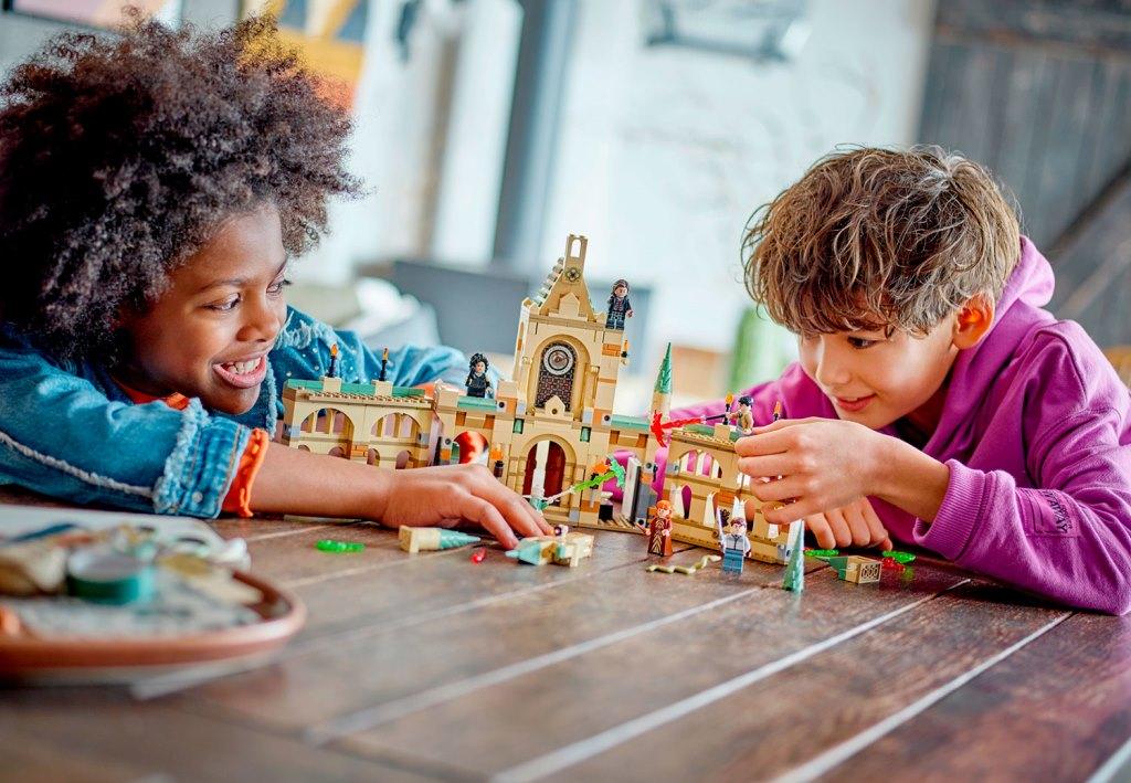 Воспроизведите битву за Хогвартс из фильма «Гарри Поттер и Дары смерти. Часть 2» с этим набором для детей от 9 лет и старше. Он представляет собой детализированную часть здания замка Хогвартс, построенную из кубиков, которую можно разбить во время сражений между Волан-де-Мортом и Гарри Поттером. Модули замка также можно переставлять, чтобы создать мост из другого запоминающегося места, и этот модульный набор соединяется с другими в серии, чтобы построить целый замок Хогвартс.