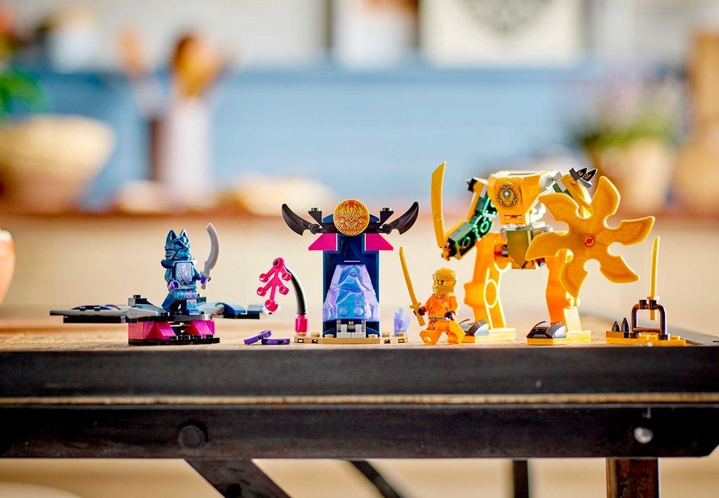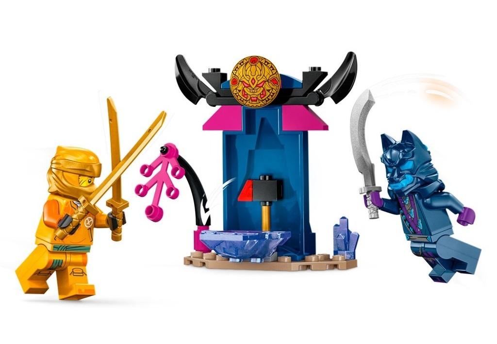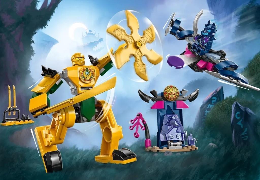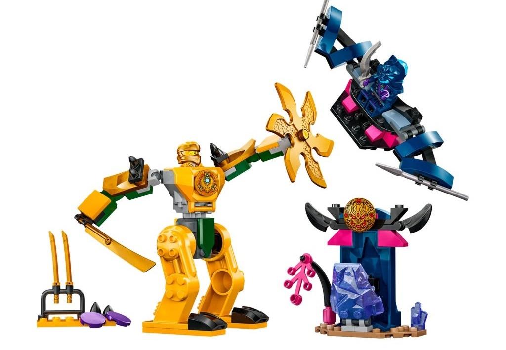 Окунитесь в захватывающие приключения, помогая ниндзя спасти драконов с этим конструктором! В комплекте вы найдете 2 минифигурки: храброго Арина с катаной и загадочного Стража в маске волка. Арин управляет механическим роботом с подвижными конечностями и вращающимся лезвием, что делает игру еще более интересной и динамичной. А воин в Маске Волка? Он может летать на планере с двумя копьями, добавляя элементы стратегии и тактики в игру. А также в наборе есть хрустальная пещера с сокрушительным молотом и оружейная стойка с двумя золотыми катанами, которые добавят еще больше возможностей для сражений и приключений. Боевой робот Арина ждет своих маленьких героев! Размер модели в собранном виде в высоту составляет 10 см.