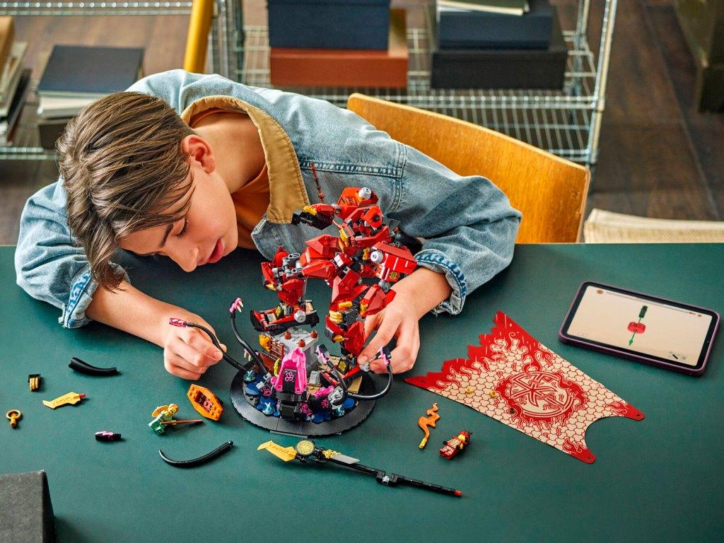 БЕЗ КОРОБКИ Конструктор «Рыцарь огня» – это масштабная коллекционная модель для поклонников вселенной Ниндзяго от 14 лет и старше, представляющая собой впечатляющую сцену эпического противостояния. В центре композиции – отважный рыцарь в плаще, вооруженный копьем, который ведет бой с древним морским монстром. Благодаря детальной проработке модель станет достойным украшением любого интерьера. Интерактивные элементы набора позволяют не только демонстрировать статичную сцену, но и создавать собственные истории. Робот оснащен подвижными механизмами, а морское чудовище – гибкими щупальцами. Набор дополнен двумя минифигурками: Кай с магическим мечом, который может размещаться в груди робота Рыбак с веслом в лодке