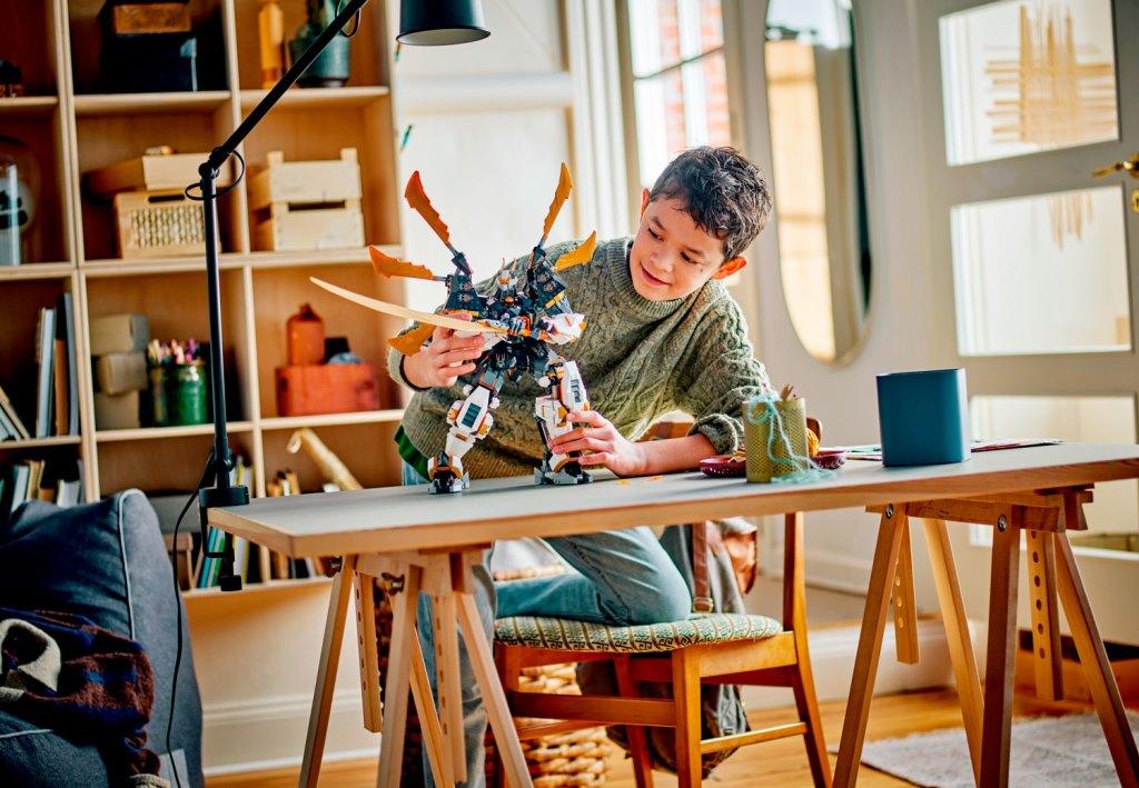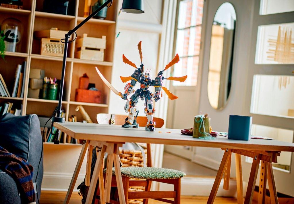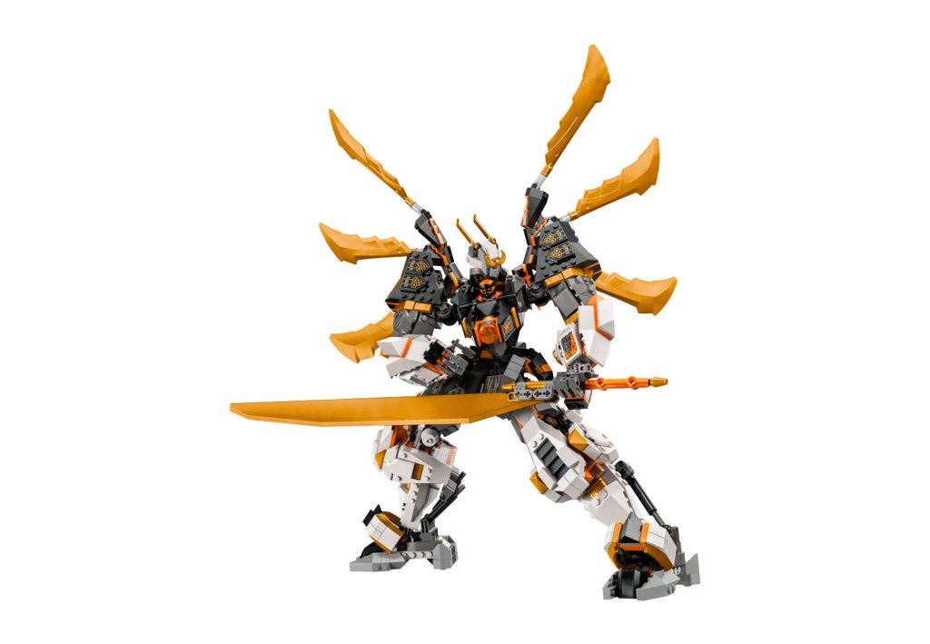 Это набор - целая вселенная приключений, которая ждёт, чтобы вы её открыли! Представьте, как вы погружаетесь в мир древних ниндзя, управляя самым могучим из роботов-титанов. С подвижными руками, ногами, головой и корпусом, он способен принимать любые боевые позы, которые только можно вообразить. А благодаря крыльям дракона на спине и величественному мечу, каждое сражение обещает быть эпическим! Под головой робота находится кокпит, куда можно поместить минифигурку Робота Коула. После игры робот-дракон превращается в потрясающую демонстрационную модель, которая украсит любую комнату. Почувствуйте себя настоящим воином вселенной Ниндзя Го! Размер модели в собранном виде в высоту составляет 39 см.