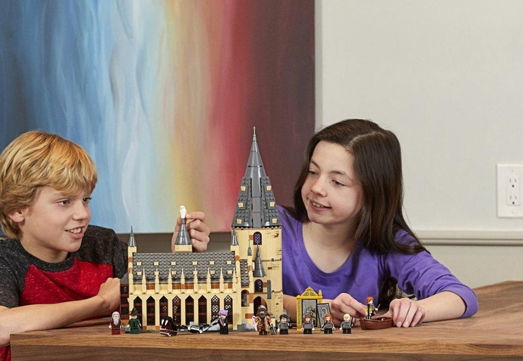 Большой зал Хогвартс 878+ деталей. Полностью совместим с Лего. Как много событий происходило в зале Хогвартса! Праздничные обеды, распределение по факультетам, чествование победителей. Так много событий, которые можно обыграть заново, купив Большой Зал Хогвартса, и замок Хогвартс вырастет на вашей полке, как будто волшебство призвали на помощь! Конструктор является одним из самых больших в линейке Гарри Поттер этого полугодия, в его состав входит 878 деталей различных цветов. Здесь и бежевый цвет стен замка, и серый цвет крыши и башен постройки, и разнообразное в своих цветовых решениях внутреннее убранство зала Хогвартса, так точно переданное дизайнерами. В состав комплекта Главный зал Хогвартса входит 10 минифигурок героев истории про маленького волшебника: -Гарри Поттер. -Рон Уизли. -Драко Малфой. -Гермиона Грейнджер. -Сьюзен Боунс. -Профессор Дамблдор. -Хагрид. -Профессор Минерва Макгонагалл. -Профессор Квиррелл. -Приведение – Почти Безголовый Ник. Главный зал Хогвартса изобилует прекрасными дополнительными игровыми аксессуарами: -лодка, на которой ученики прибывали в замок; -змей василиск; -распределительная шляпа; -набор котелков и волшебных зелий; -движущаяся лестница в башне; -сборная фигурка птицы Феникса и многое другое. Находящееся на верхнем этаже башни Зеркало Еиналеж позабавит вас своими, порой неожиданными изображениями. Все это подразумевает возможность разыграть дополнительные сюжеты, не входящие в основную сюжетную линию набора. Набор изначально готов к объединению с другими наборами серии про маленького волшебника, к примеру, объединив его с конструктором Гремучая Ива, можно получить поистине монументальное сооружение, заслуживающее места на полке.