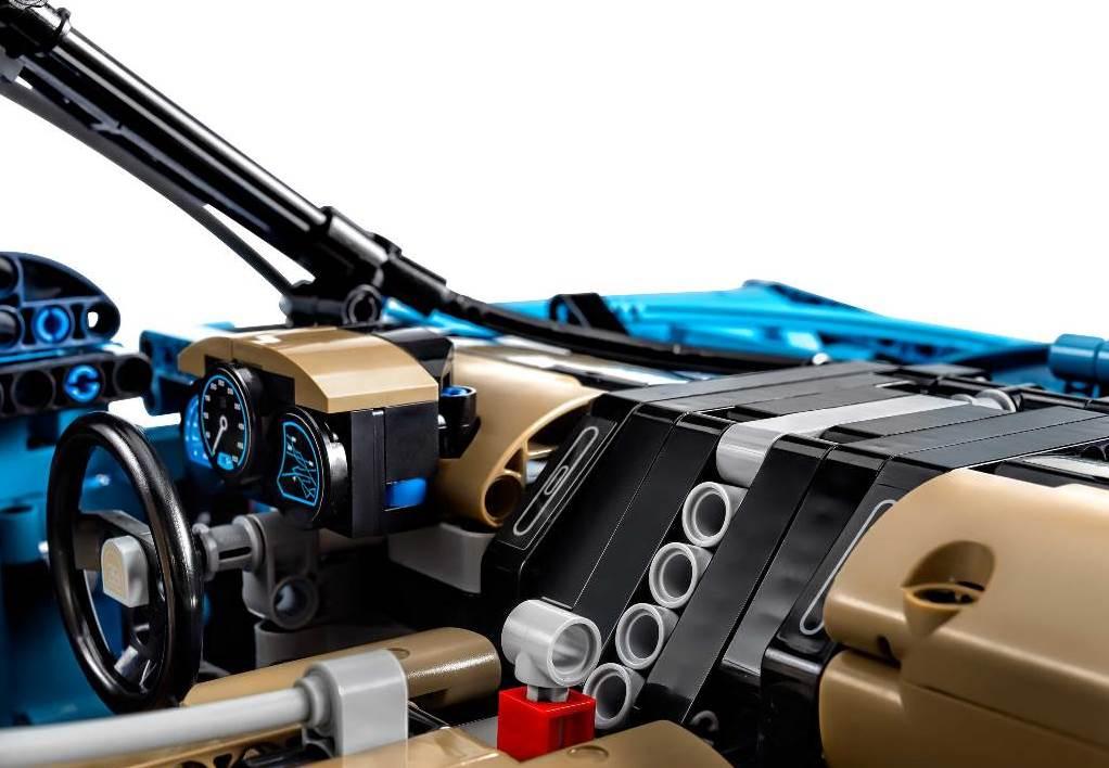 Автомобиль в этом наборе является точной копией легендарного суперкара. Производители конструктора воссоздали до мелочей отличительные особенности бренда техническое совершенство, точность форм и мельчайших деталей. О сходстве с прототипом свидетельствуют факторы: синий цвет автомобиля (French Racing Blue); наличие фирменной эмблемы; задние фонари, вытянутые в прямую линию; руль имеет плоскую нижнюю секцию; решетка радиатора в виде подковы; логотип компании. Кузов легендарного автомобиля обладает выразительной центральной линией и отличными аэродинамическими характеристиками. Колеса авто оснащены низкопрофильной резиной, многоспицевыми колесными дисками и дисковыми тормозами. Модель конструктора двигателем W16, в котором каждый цилиндр подвижен за счет коленчатого вала.