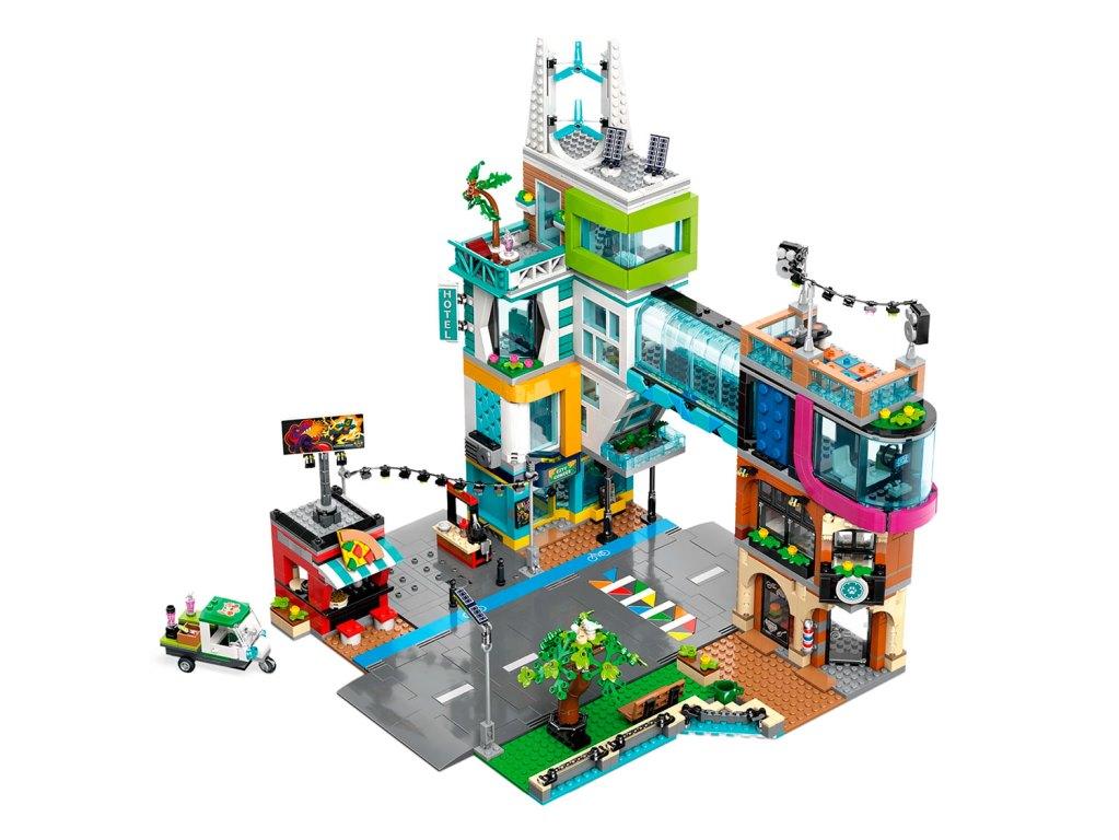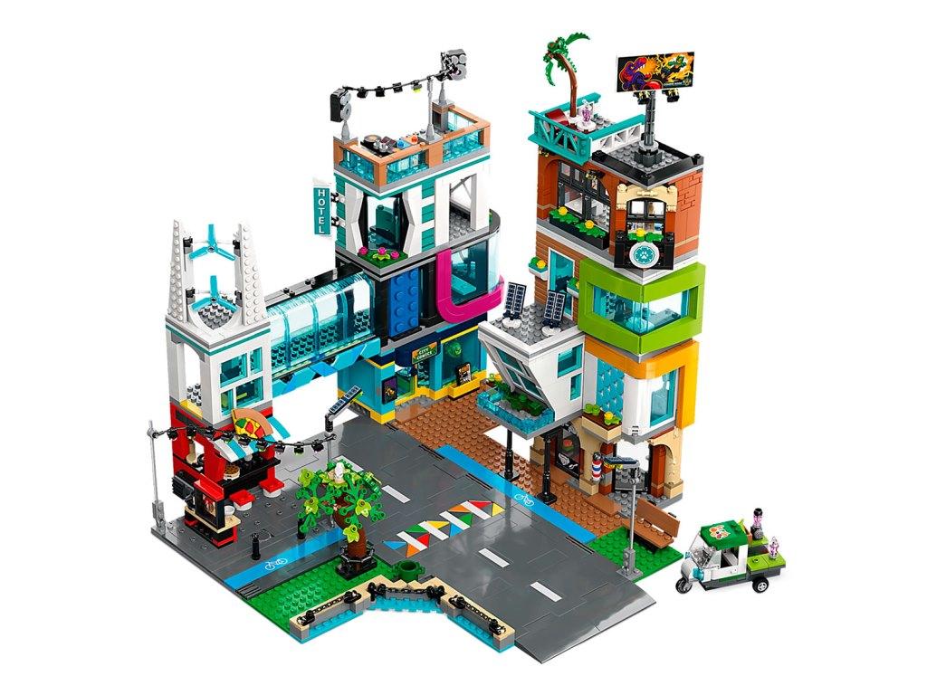 Подарите своему повседневному герою незабываемые впечатления от сборки и игры. Этот удивительный игровой набор с комбинируемыми модулями комнат включает в себя парикмахерскую, ветеринарную клинику, студию для ведения блога, дискотеку на крыше, магазин комиксов, магазин техники, комнату уборщика и отель. Все это, а также парк, зона уличной еды, 14 вдохновляющих персонажей и дорожная плита для связи с другими наборами из линейки City.