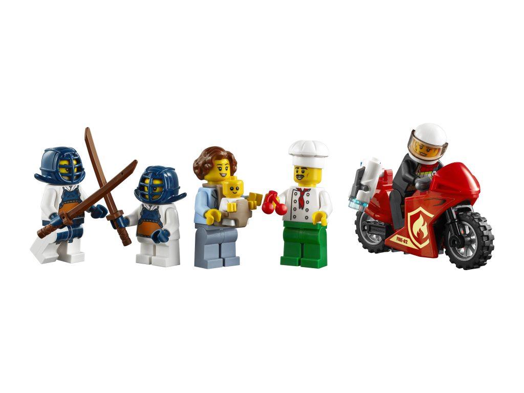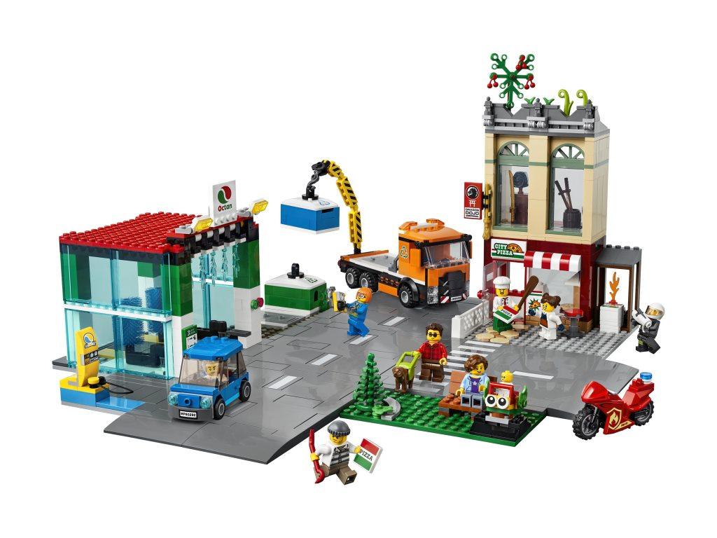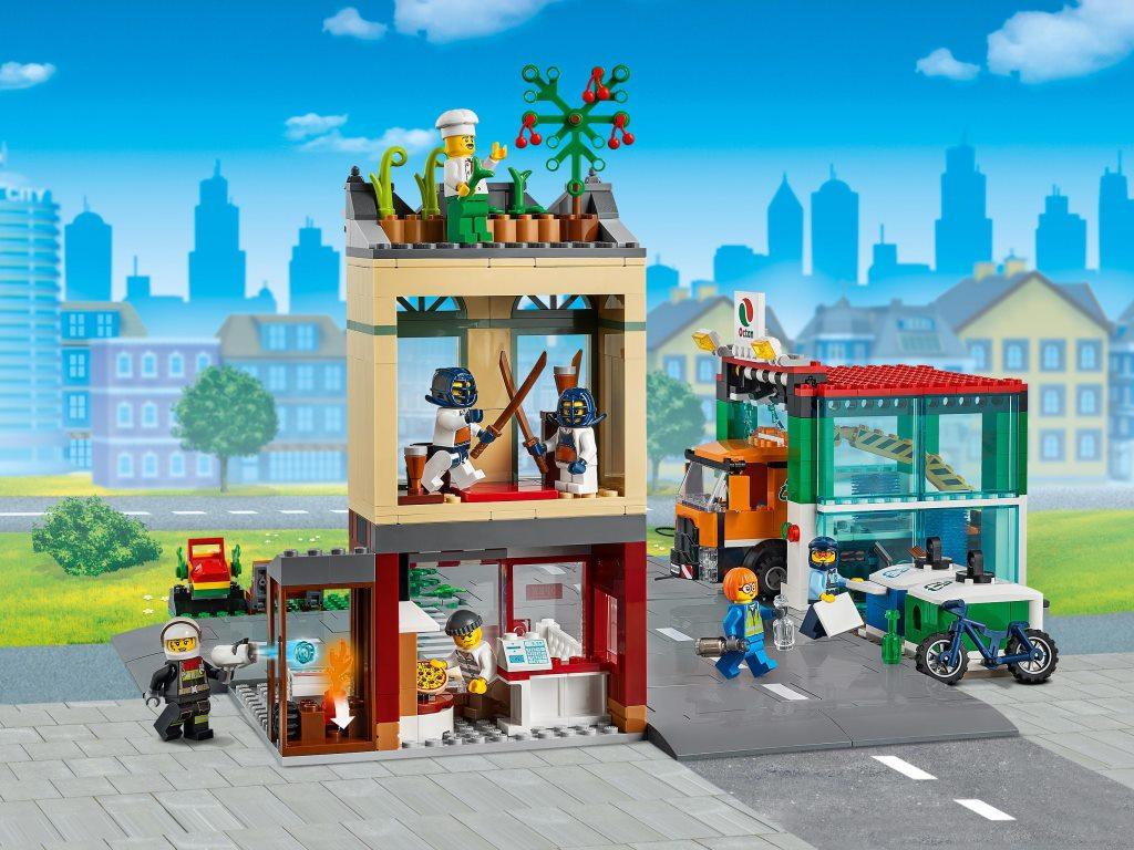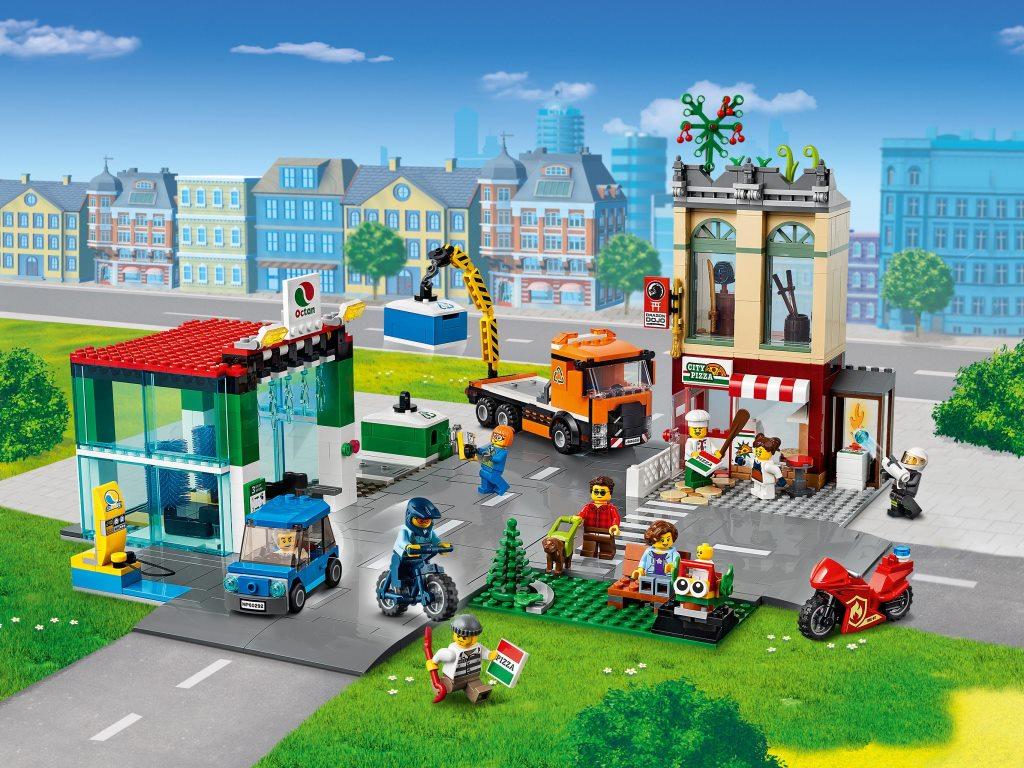 Данный набор познакомит поближе детей и взрослых с интересной жизнью города. Каждый для себя сможет выбрать наиболее понравившуюся ему локацию и придумать массу увлекательных сюжетов. Конструктор представляет собой целый город, в котором расположено множество ярких локаций. Собрав набор, можно пойти перекусить в итальянский ресторан, где готовят самую вкусную пиццу, прогуляться с собакой или посетить детскую площадку. Благодаря большому количеству игровых зон и минифигурок героев будет интересно играть всей семьей или в большой компании друзей. В городе происходит масса забавных событий: во время готовки в ресторане разгорелся огонь, но все среагировали молниеносно, и пожарный уже тушит пламя. Прямо над рестораном расположен зал боевых искусств, где опытные мастера с удовольствием обучают всех желающих. На другом конце городка работает автоматическая мойка с вращающимися щетками, которая быстро вымоет вашу машину до идеального блеска, а после мойки вы сможете зарядить свой электромобиль на специальной станции и отправиться дальше в путь. Все жители беспокоятся о чистоте и экологии своего городка и понимают всю важность и необходимость в правильной переработке мусора. Поэтому они тщательно сортируют весь мусор в специальные контейнеры, которые потом грузят на манипулятор и увозят на утилизацию. К сожалению, в городе не обходится без преступников, но благодаря полиции, ни один вор или мошенник не останется на свободе.