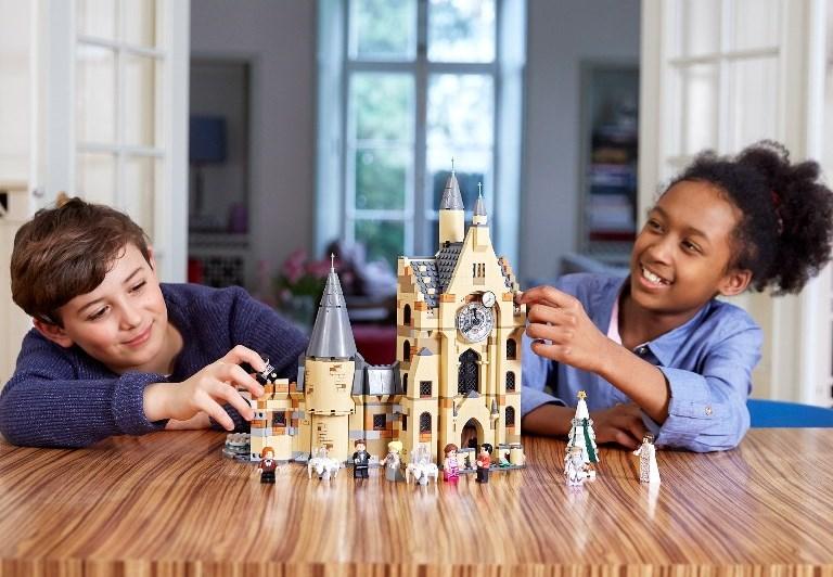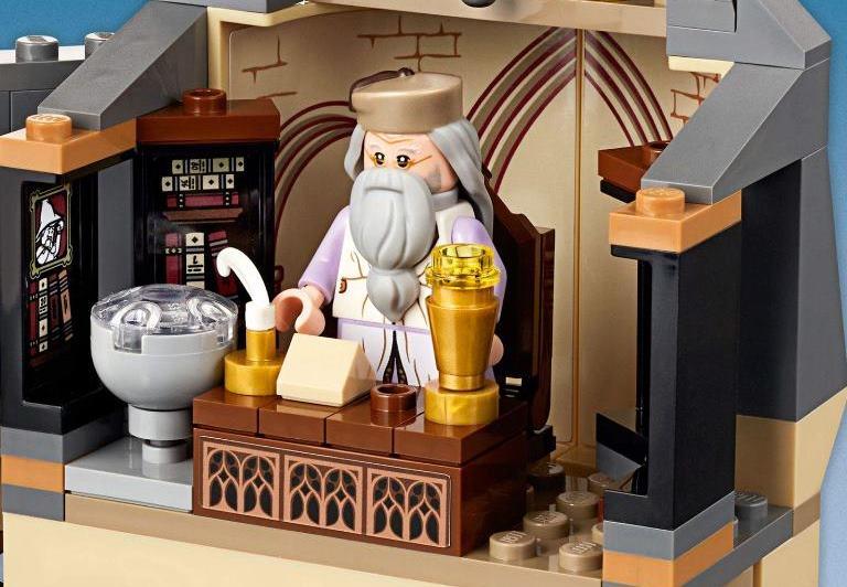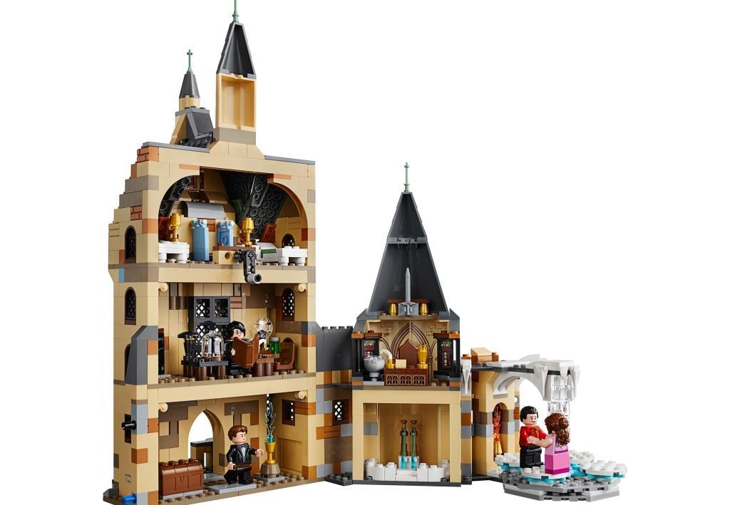 С героями набора посети знаковые локации Часовой башни Хогвартса. Проберись в самый верх башни и качни Маховик времени, повернув время вспять, но не забудь вернуться назад и принять участие в Святочном бале. Удивительные локации Часовой башни Из деталей набора собирается Часовая башня замка юных волшебников с небольшой пристройкой, в которой расположены апартаменты директора – профессора Дамблдора. Трехэтажное здание башни имеет следующие локации: -холл, в котором первое, что видят гости – сундук и Кубок огня; кабинет, оснащенный различными учебными пособиями; -больничное крыло, оборудованное двумя кроватями и светильниками. В верхней части башни находятся магические часы, вращая ручку которых можно совершать путешествия в прошлое и заново переживать особо яркие моменты и удивительные приключения. Пристройка профессора Дамблдора имеет двухэтажную структуру. На первом этаже расположена ванная комната директора школы волшебников, оснащенная витражным окном с изображением русалки. На втором этаже находится рабочий кабинет профессора. В нем установлен большой письменный стол, стул и подставка с магическим мечом Гриффиндора. На заднем дворе Часовой башни все готово для проведения Святочного бала. Сам двор украшен Рождественской елью, ледяной скульптурой и двумя ледяными столами сервированными посудой для напитков. Танцевальный пол оснащен механизмом, вращая который, создается полное впечатление, что персонажи набора кружатся в вальсе. Все восемь минифигурок набора являются обновленными для этой серии конструкторов, каждая из них укомплектована волшебной палочкой и одета в наряды для Святочного бала. В состав набора входят следующие минифигурки: -Гарри Поттер; -Рон Уизли; -Гермиона Грейнджер; -Флер Делакур; -Седрик Диггори; -Виктор Крам; -Альбус Дамблдор; -Мадам Максим. В собранном виде Часовая башня Хогвартс имеет следующие размеры в длину, высоту и ширину: 35х34х18 см.