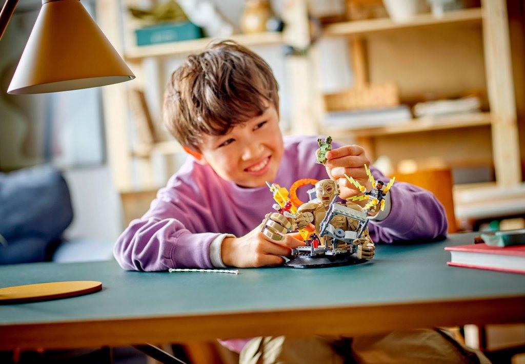 Перенеситесь прямиком в центр действия из фильма "Человек-паук: Нет пути домой" с этим конструктором! Из деталей набора вы сможете воссоздать знаменитую битву и дать волю своему воображению. С тремя злодеями на выбор - Песочным человеком, Электро и Ящерицей (это первый набор с минифигуркой Ящерицы!) - сценарии игры становятся практически безграничными. А как насчет того, чтобы заставить Песочного Человека кружиться и махать своими огромными руками, пытаясь поймать Человека-Паука, пока тот качается на своей паутине над головой? Звучит захватывающе, не правда ли? Этот конструктор - ключ к миру фантазии, где вы сможете стать героями своих любимых историй.