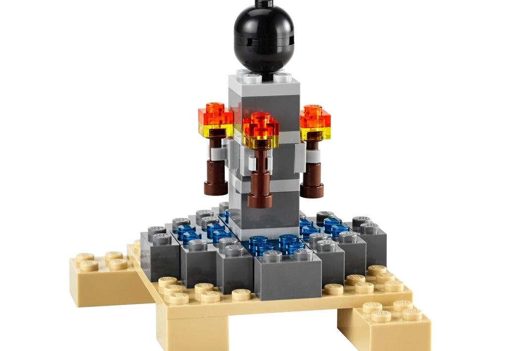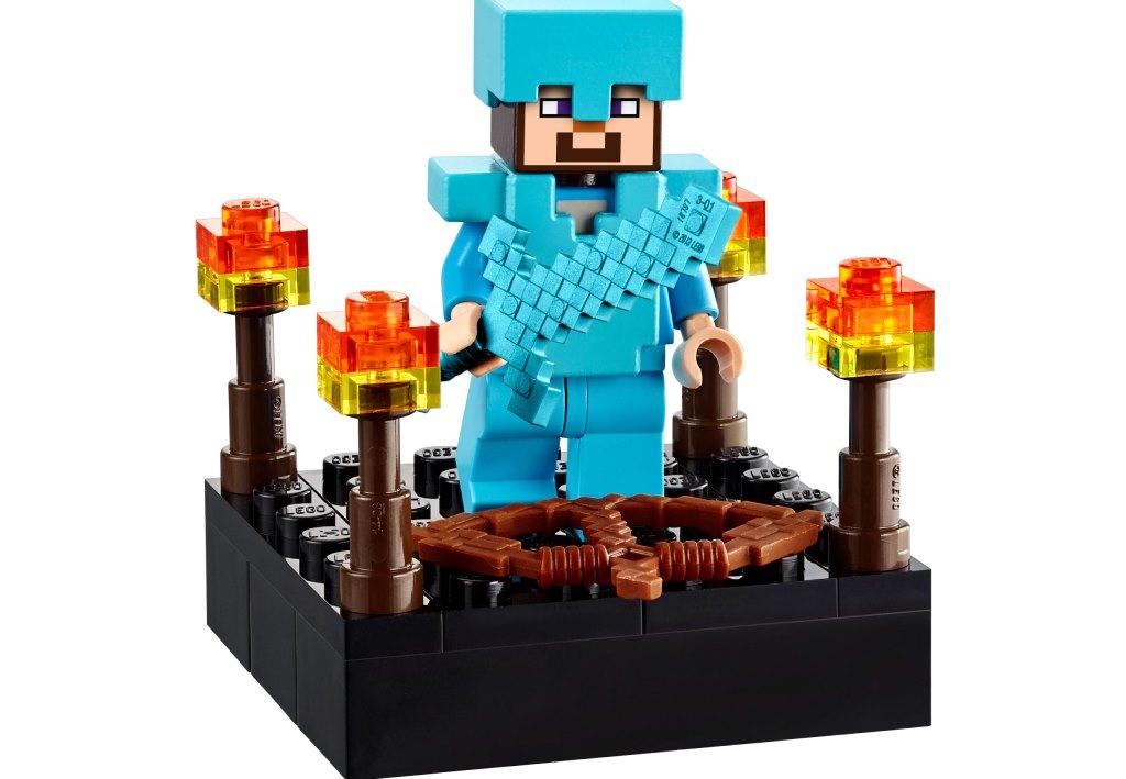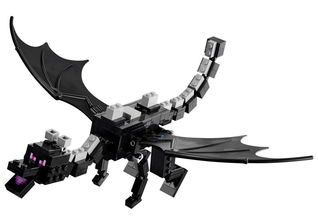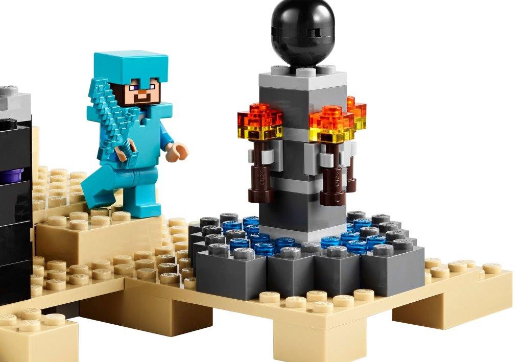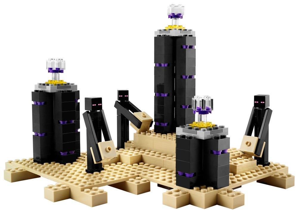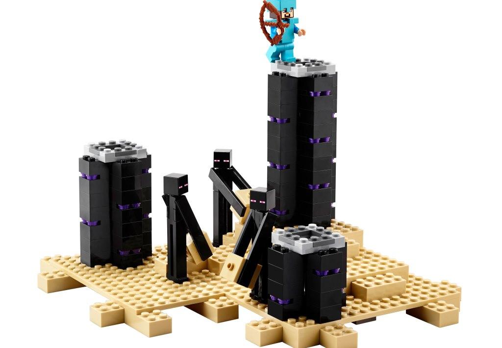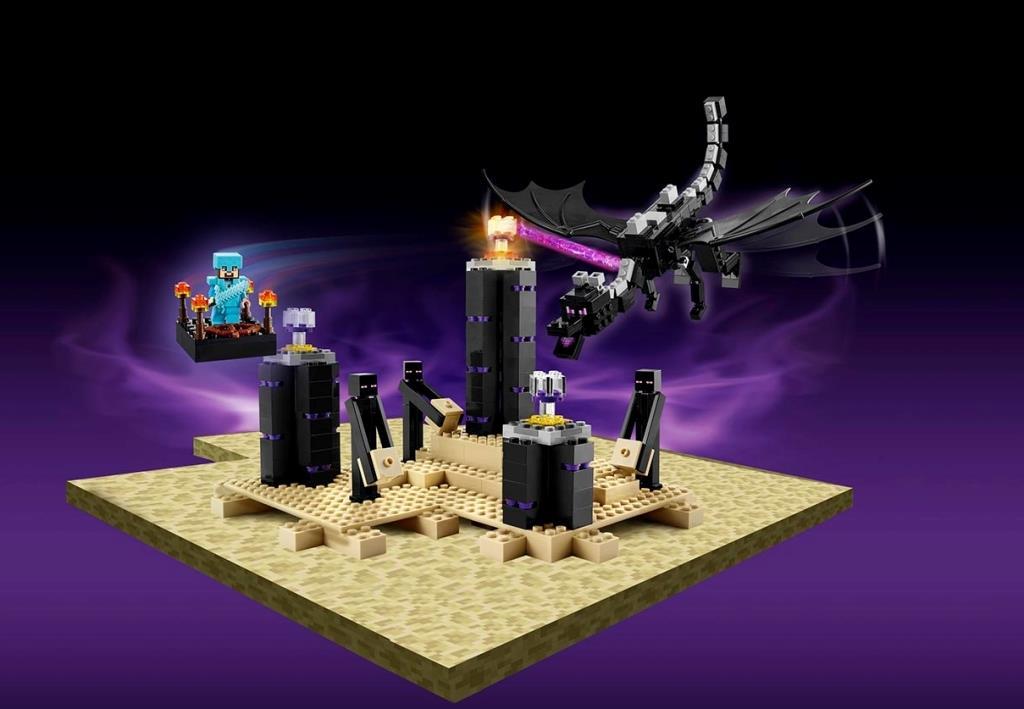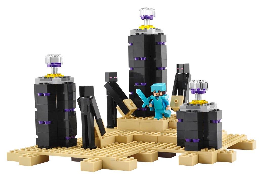 Край - это пустынное место, представляющее собой плоский остров, парящий в тёмно-пурпурном беззвёздном небе. Основой поверхности служит песочно-бежевый камень Края, встречающийся только в этом измерении. Главными обитателями острова являются странники Края. Это высокие чёрные персонажи с длинными конечностями и розово-фиолетовыми глазами. Днём они настроены дружелюбно, но с наступлением темноты могут атаковать игрока, телепортируясь ему за спину. Наибольшую опасность несёт в себе босс финального уровня - Дракон Края. Его чёрное тело и огромные крылья вселяют ужас в сердца всех неподготовленных игроков. Чтобы одолеть такое свирепое чудовище необходимо заранее обзавестись надёжной бронёй, алмазным мечом и луком со стрелами. Также следует учитывать, что дракон может регенерировать, пролетая над искрящимися кристаллами, установленными на вершинах обсидиановых столбов. Поэтому сначала следует разрушить столбы, а потом вступить в схватку с драконом. Если игроку улыбнётся удача, и он сможет одержать победу, то перед ним появится обратный портал с яйцом дракона. Зайдя в портал, игрок переместится обратно в обычный мир. В набор входят 3 фигурки странников края, большая фигурка дракона Края и минифигурка Стива.