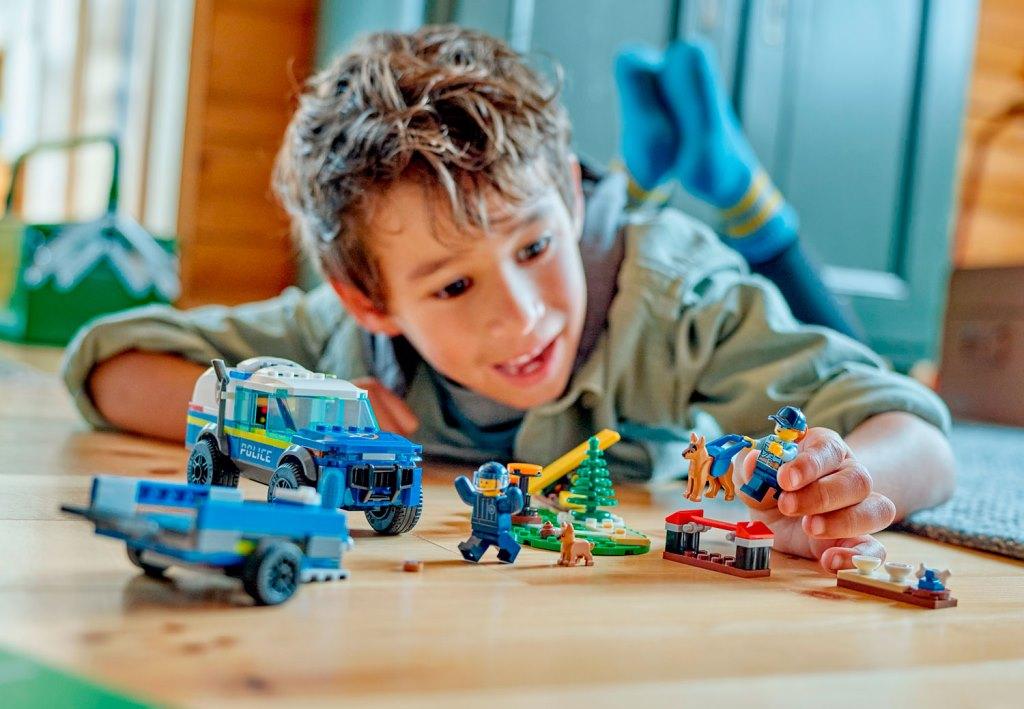 Детям и любителям собак в возрасте от 5 лет и старше понравится этот игрушечный набор «Дрессировка полицейской собаки на выезде». Наполненный вдохновением для творческих игр, он поставляется с внедорожником K9, прицепом и 3 тренажерами для собак, включая качели, перекладину для прыжков и подножки. Просто возьмите полицейских, фигурки собак и щенков и начните веселье.