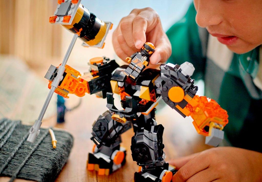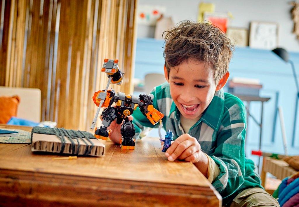 Дети в возрасте от 7 лет и старше смогут разыгрывать захватывающие истории сражений из второго сезона: Восстание драконов». У этого крутого робота подвижные руки и ноги, которые можно вращать, создавая боевые позы, тяжелая броня Коула, большой молот и кабина, в которую помещается минифигурка. Этот подвижный робот позволяет создавать новых роботов! Его съемные ноги, руки и туловище можно комбинировать с деталями от 2-х других наборов: элементального технического робота Соры и элементального огненного робота Кая. Дети смогут часами развлекаться, смешивая и сочетая детали, чтобы создать собственную уникальную сборку.