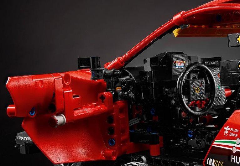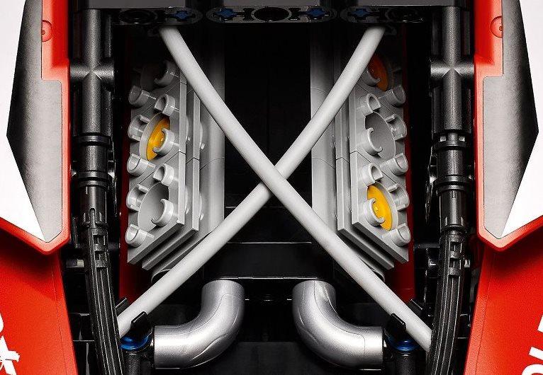 Из деталей конструктора собирается детализированная масштабная модель легендарного гоночного болида, дебютировавшего на гоночных трассах в 2016 году. После ошеломительного появления на треках, автомобиль, что называется, перевернул мир автогонок. Победы просто преследовали детище итальянских конструкторов. Множество великолепных достижений и престижных наград постоянно пополняют послужной список этого незаурядного автомобиля. Набор является прекрасным подарком всем любителям гонок на выносливость и станет достойным украшением полки коллекционера или интерьера истинного поклонника мира автоспорта. Коллекционная модель имеет в своем арсенале работающую копию мощного восьмицилиндрового двигателя V8, поршни которого приходят в движение, как только автомобиль начинает перемещаться по игровой поверхности. Модель оснащена независимой подвеской всех колес, имеющей довольно большие ходы, позволяющие ей без труда преодолевать неровности поверхности. Открывающиеся двери являют взору детально проработанный салон автомобиля, в котором в мельчайших подробностях воссоздано рабочее место пилота. Эксклюзивный набор оборудован рабочим рулевым механизмом, позволяющим поворачивать колеса из салона автомобиля. Модель гоночного болида выполнена из деталей красного и черного цвета. Особый шарм ей придает аутентичный окрас, полностью повторяющий цветовую схему, в которой щеголяет на трассе ее реальный прототип.