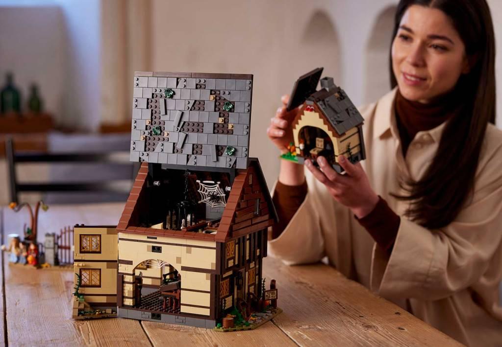 Окунитесь в чарующую атмосферу по мотивам фильма "Фокус-покус" с помощью этого набора. Из деталей конструктора вы сможете собрать магический Коттедж сестер Сандерсон. Изучить и рассмотреть интерьер внутри дома, включая сувенирный магазинчик и спальню ведьмы, а также множество других деталей вы сможете просто подняв крышу. Для ещё более захватывающей игры поверните водяное колесо, чтобы из трубы пошел "розовый дым". Для уюта вы сможете активировать световой кубик Lego, чтобы зажечь огонь. Для подробного разыгрывания сцен из киноленты 1993 года в набор добавлены 6 минифигурок : Уинифред Сандерсон, Сара Сандерсон, Мэри Сандерсон, Макс Деннисон, Дэни Деннисон и Эллисон Уоттс, а также фигурка Тэкери Бинкс (в форме кошки) и аксессуары. Размеры коттеджа в собранном виде : 27х26х24 см