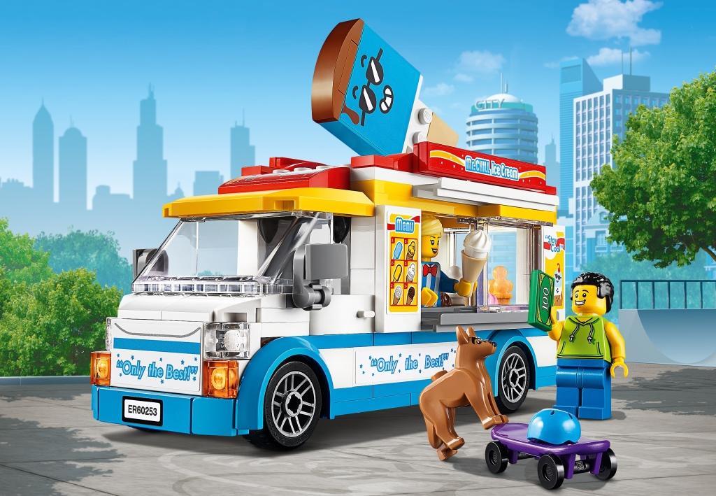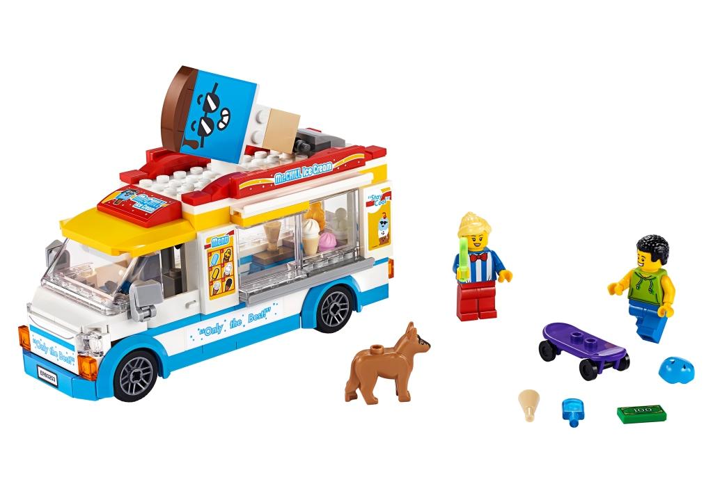 Набор снабжен большим грузовиком мороженщика с современным оборудованием для продажи сладких десертов. В конструктор входят две минифигурки, собака и тематические аксессуары. «Грузовик мороженого» - то, что нужно, чтобы остудиться жарким летним деньком во время активной прогулки в парке. В ассортименте грузовичка ты найдешь ванильное, фруктовое, шоколадное мороженое в вафельном рожке. Милая девушка-продавец с удовольствием добавит к знакомому вкусу сладкий экзотический сироп и пожелает приятного аппетита. Покатайся вдоволь по парку на скейтборде, отыщи грузовик с угощением и отведай несколько порций любимого десерта. Сегодня именно тот день, когда можно вдоволь насладиться всеми вкусами мороженого. Комплектация конструктора: -Грузовик, оснащенный современным оборудованием для изготовления мороженого с разными вкусовыми добавками. Также в автомобиле установлен кассовый аппарат. Окно грузовичка широко открывается, позволяя покупателю выбрать и оплатить любимый десерт. Кабина довольно просторная, способная вместить в себя продавца мороженого. Сверху на машине расположен подвижный рекламный щит в виде огромного эскимо; -2 минифигурки: девушка-продавец и мальчик; -Фигурка собаки; -Аксессуары: множество приспособлений для продажи мороженого, скейтборд, купюры, шлем, игрушки для собаки и прочее. Размер автомобиля в собранном виде: 15х6х11 см.