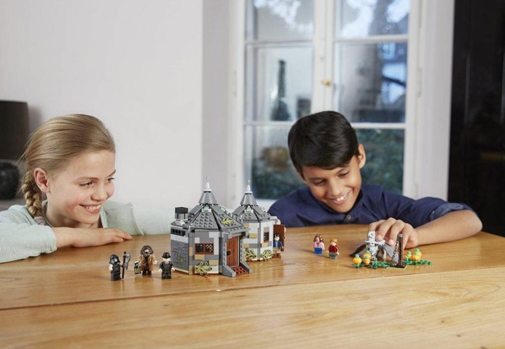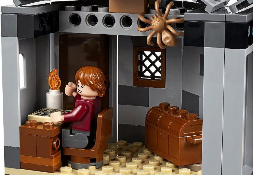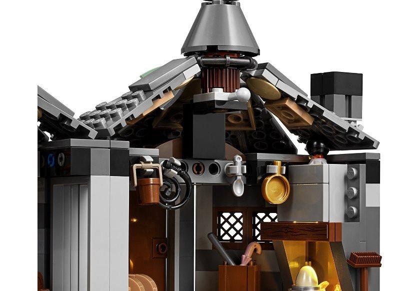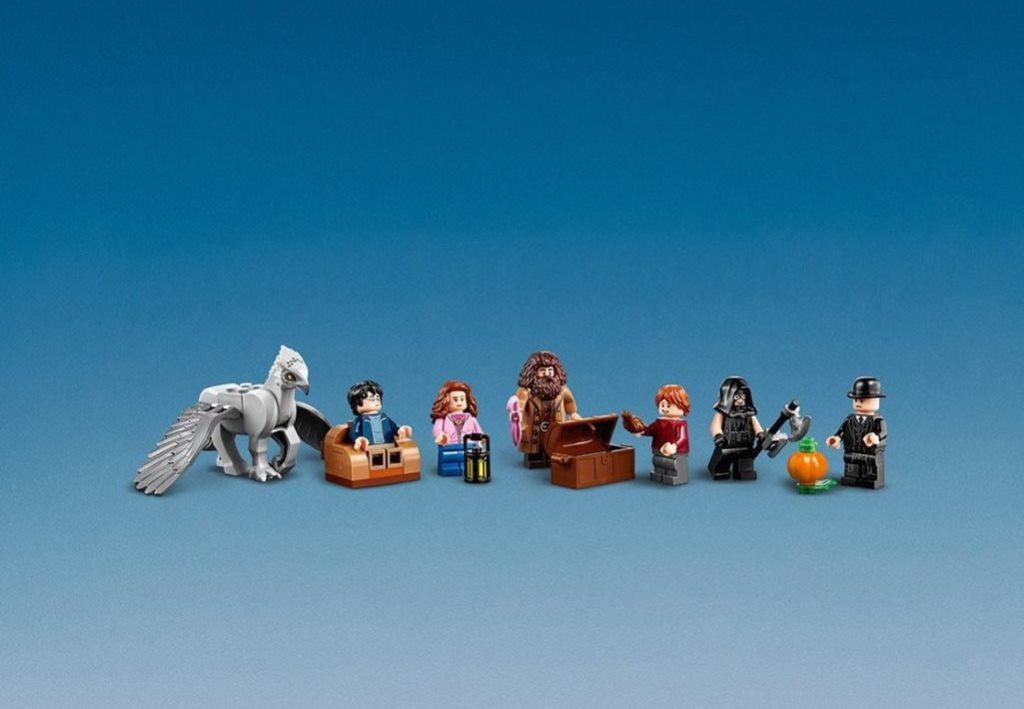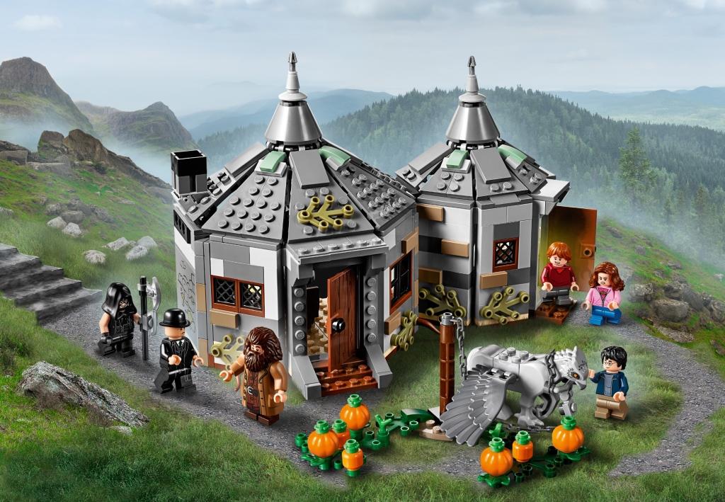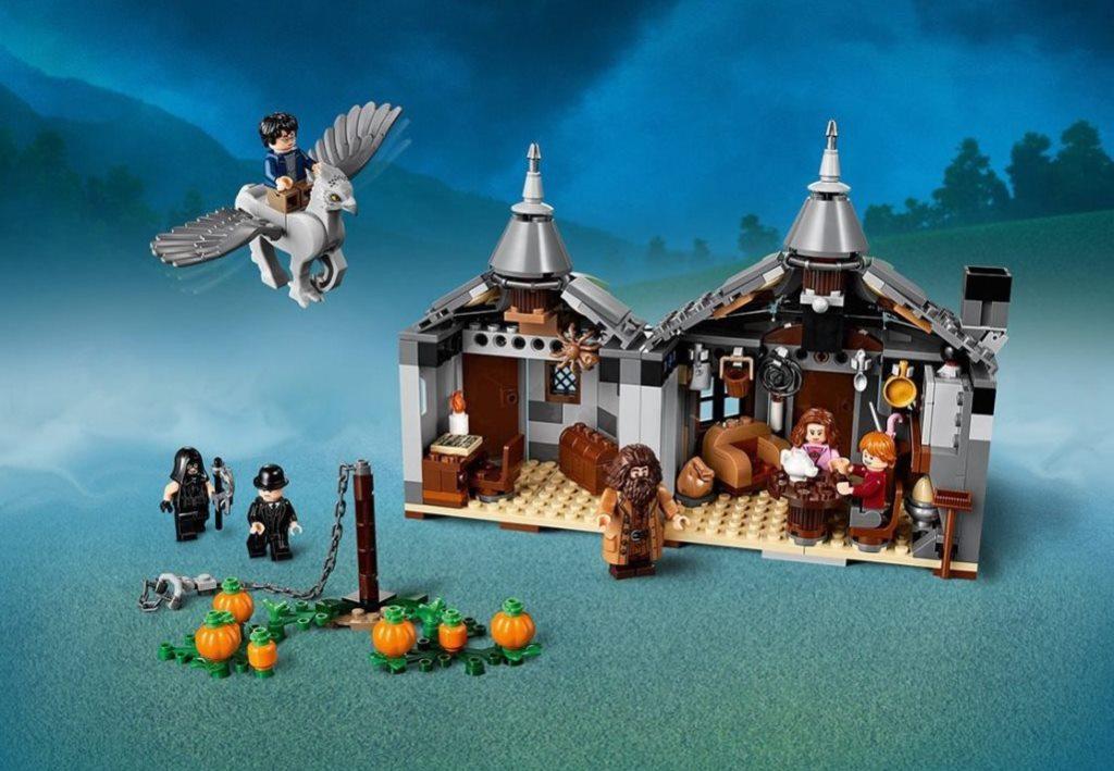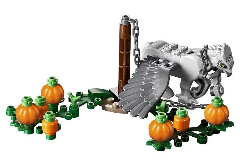 Невероятное спасение гиппогрифа Гиппогриф – волшебное животное, у которого задняя часть туловища коня, а передняя – орлиная. Невероятно красивое и очень гордое животное, относиться к которому следует очень уважительно, с большой долей почтения. Главный герой набора был незаслуженно приговорен к смертной казни за нападение на человека. Вмешательство юных волшебников, неравнодушных к судьбе животного, позволило сохранить ему жизнь. Из деталей собирается хижина Хагрида, состоящая из двух помещений: рабочего кабинета и гостиной. Интерьер хижины детально проработан и наполнен различными игровыми аксессуарами. В кабинете можно увидеть письменный стол, стул, газету, сундук и свечу. В гостиной расположены большой стол с двумя стульями, складное кресло и камин. Особенность камина – идущая в комплекте светящаяся деталь, которую можно активировать, нажав на трубу дымохода хижины. Помещение гостиной сразу наполняется светом, теплом и уютом, исходящими от камина. На заднем дворе хижины обустроены тыквенные грядки, на которых и ожидает своей участи прикованный цепью к столбу Клювокрыл.