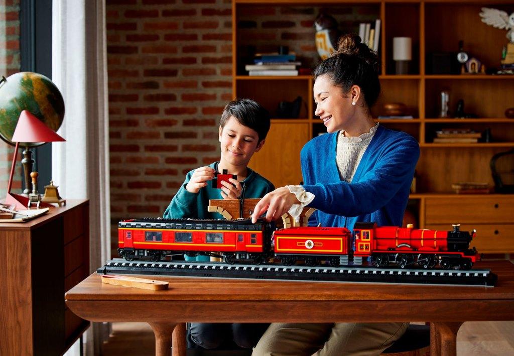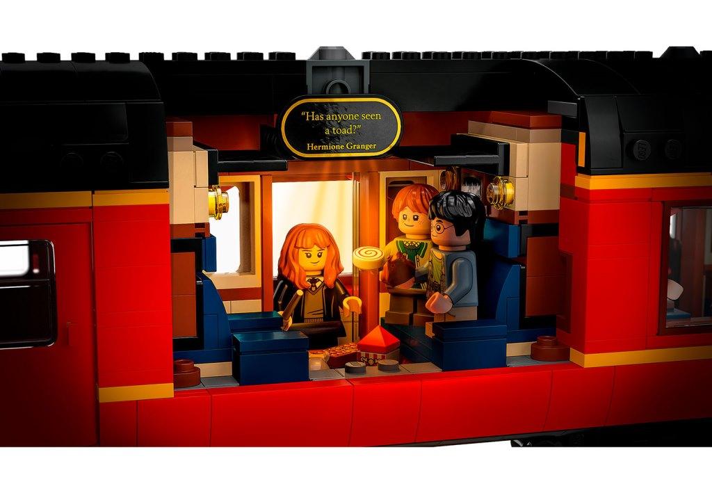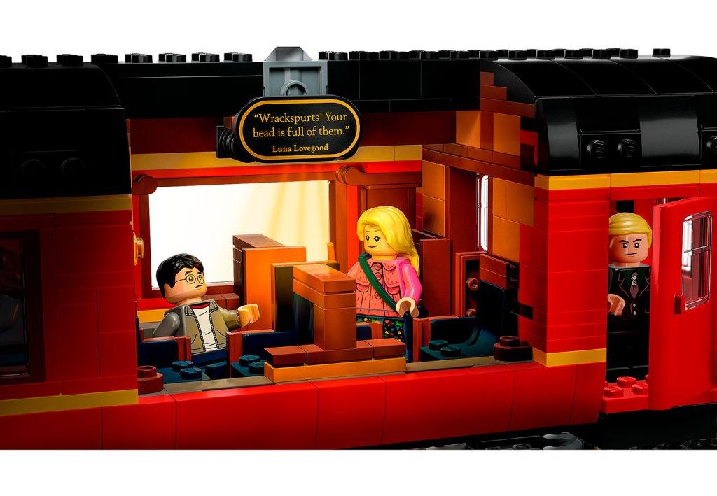 Собрать важную локацию для каждого поклонника волшебной истории о Гарри Поттере теперь можно с набором Хогвартс-Экспресс. Данный эксклюзивный набор позволяет воспроизвести знакомство и первую поездку в Хогвартс юных магов из первого фильма, спасение от дементоров из третьей части, избавление Гарри от чар Драко Малфоя при помощи Луны Лавгуд из шестого фильма, а также сцену проводов в школу магии и волшебства детей Гарри и Джинни на вокзале Кингс-Кросс. Знаменитый поезд Хогвартс-Экспресс отправляется в школу волшебников с платформы 9¾ на вокзале Кингс-Кросс. Из деталей можно собрать точную копию станции и поезда в масштабе 1:32. Поезд состоит из трех частей: красного локомотива, угольной станции и пассажирского вагона. При помощи специального рычага в верхней части локомотива вращаются колеса, заставляя его раскачиваться, как с настоящим паровым двигателем. Благодаря светящимся кубикам, можно включать освещение в вагоне. Внутреннее наполнение всего поезда невероятно детализировано. Уголь в тележке наполнен необходимым количеством для поездки. Вагон поезда вмещает 3 купе: в каждом из них будет представлена отдельная сцена из фильмов о Гарри Поттере с участием других персонажей. В наборе так много минифигурок, что можно играть с ними несчетное количество часов! Здесь есть фигурки Гарри Поттера, Рона Уизли и Гермионы Грейнджер в образе детей, они же втроем в подростковом возрасте, а также 2 минифигурки Гарри – в юношеском и взрослом облике. Помимо них в комплект входят: дементор, Луна Лавгуд, Драко Малфой, профессор Люпин, проводник поезда, ведьма-продавец из поезда, Джинни Уизли, дети Поттеров: Альбус Северус Поттер, Лилу Луна Поттер, Джеймс Сириус Поттер; а также школьница Равенкло и ученик Хаффлпаффа. Всего в наборе 20 минифигурок. Размеры платформы вместе с поездом Хогвартс-Экспресс в собранном виде: 26х118х20 см. В набор включены три светящихся кубика, а также большое ко