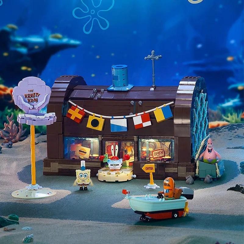 Лицензия Nickelodeon! Конструктор «Красти Краб» с подсветкой по мотивам мультсериала «Губка Боб Квадратные Штаны» Погрузитесь в яркий подводный мир Бикини Боттом с конструктором «Красти Краб»! Этот набор позволит воссоздать знаменитый ресторан быстрого питания, где разворачиваются ключевые события любимого мультсериала. Что входит в набор: детали для сборки модели ресторана «Красти Краб» с характерной архитектурой; минифигурки главных персонажей: Губка Боб, Патрик, Сквидвард, мистер Крабс, Планктон и 2 покупателя; тематические аксессуары: гриль для крабовых котлет, кассовый аппарат, мусорный контейнер, сейф; секретная ваза с рецептурой крабби‑пэтти — важный элемент сюжета; дополнительные декоративные элементы для создания атмосферы ресторана. Особенности конструктора: детализация: тщательная проработка интерьера и экстерьера здания, соответствующая оригинальному дизайну из мультсериала; совместимость: элементы конструктора совместимы с другими наборами аналогичной системы (при наличии); образовательный аспект: развитие мелкой моторики, пространственного мышления и навыков следования инструкциям. Характеристики: количество деталей: 2 700 шт.; рекомендуемый возраст: 6+ лет; материал: высококачественный ABS‑пластик; Почему стоит выбрать этот конструктор? погружение в сюжет: возможность воссоздать любимые сцены из мультсериала или придумать собственные истории; качество и безопасность: все элементы изготовлены из прочных, нетоксичных материалов, соответствующих международным стандартам; долговечность: надёжное соединение деталей обеспечивает устойчивость конструкции; универсальность: подходит как для индивидуальной игры, так и для совместных занятий с друзьями или родителями. С этим набором ребёнок не просто соберёт модель — он создаст собственный кусочек Бикини Боттом, где каждый элемент напоминает о приключениях Губки Боба и его друзей. Идеальный подарок для поклонников мультсериала любого возраста!