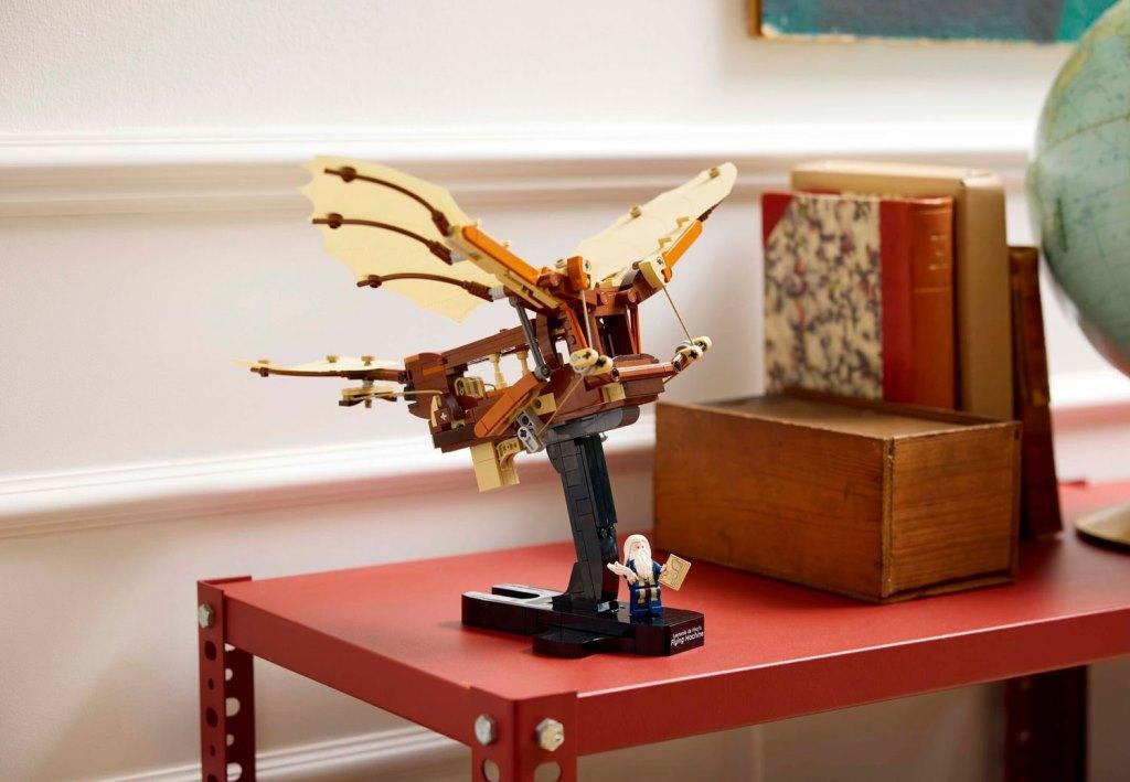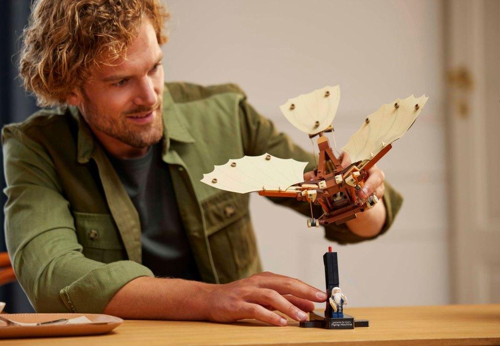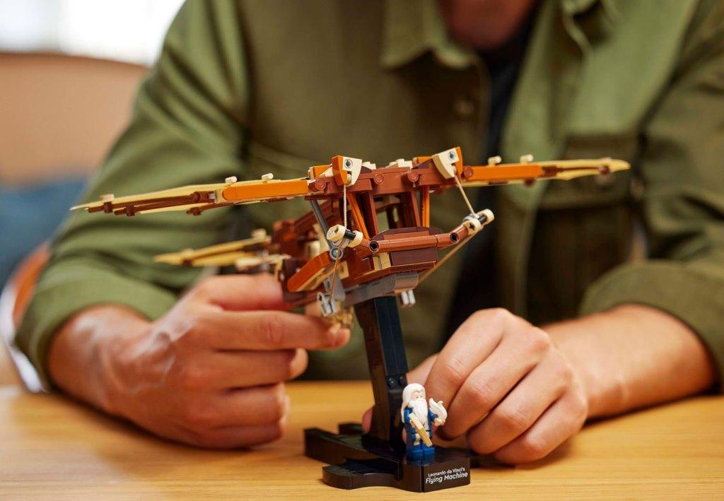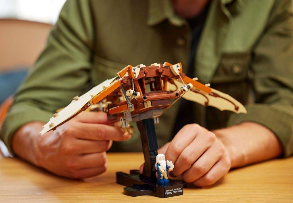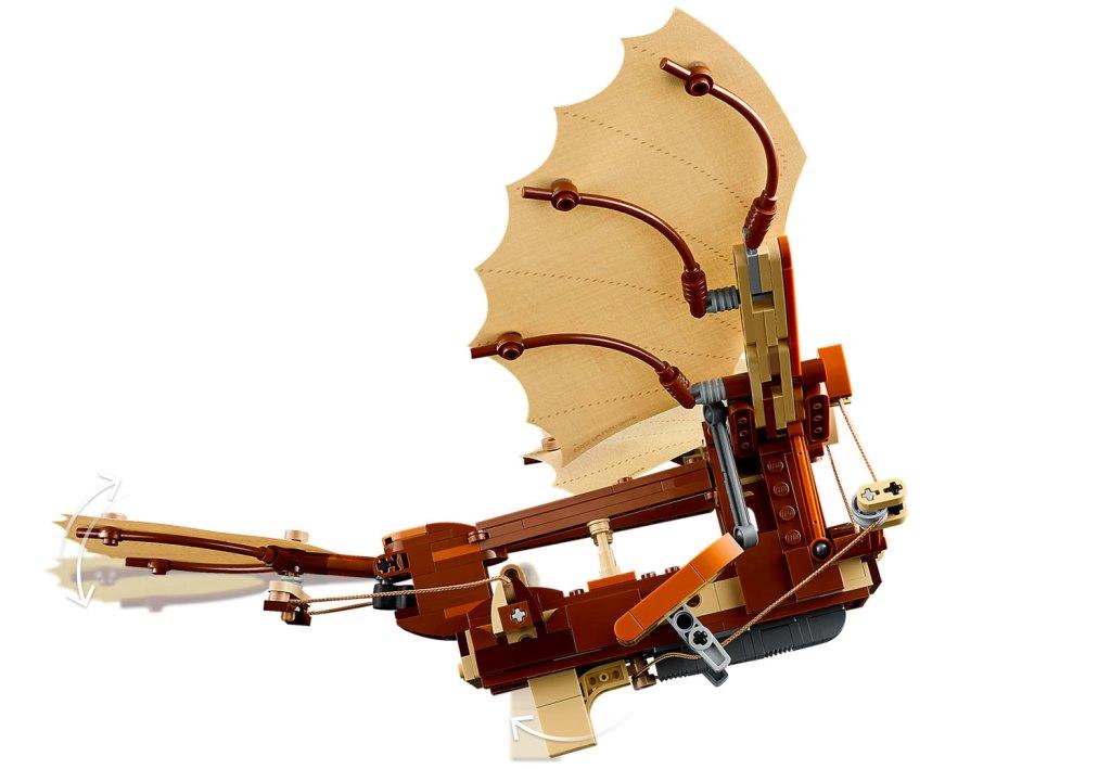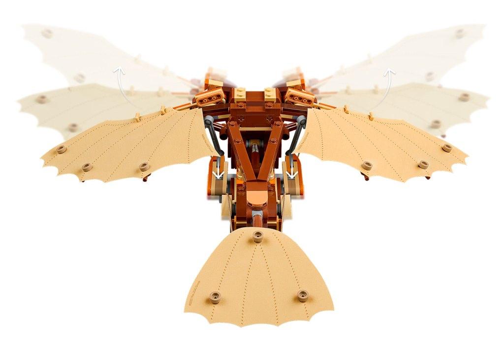 Создайте свою версию легендарного изобретения и прикоснитесь к истории технического прогресса! Из деталей набора вы сможете собрать детализированную модель орнитоптера с открытым каркасом и текстильными вращающимися крыльями. Видимые механизмы с веревками, шарнирами и шкивами добавляют реализма и делают процесс сборки настоящим приключением. В комплект входит минифигурка Леонардо да Винчи с пером и эскизом. Это уникальная возможность воссоздать одно из самых амбициозных изобретений великого итальянского изобретателя эпохи Возрождения. Размер модели в собранном виде составляет 25х29х35 см.