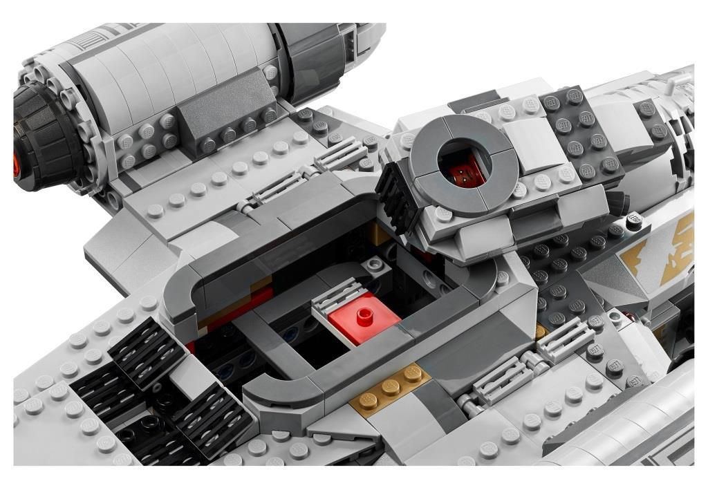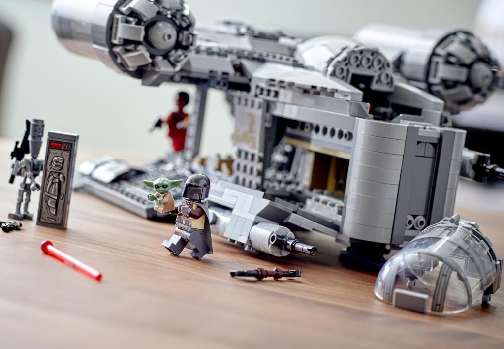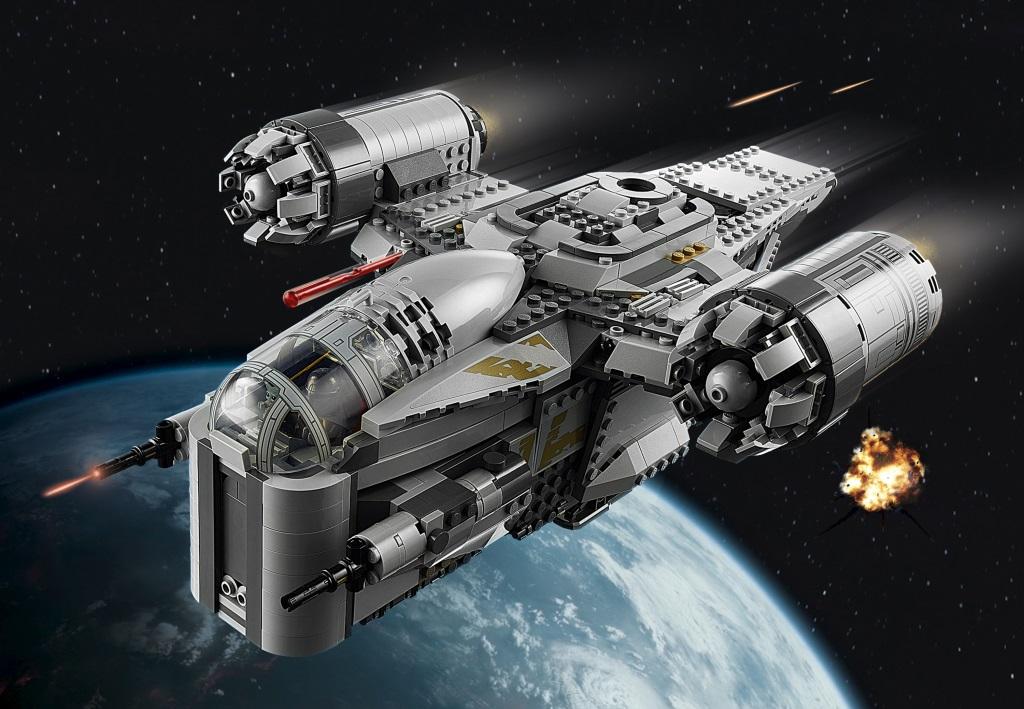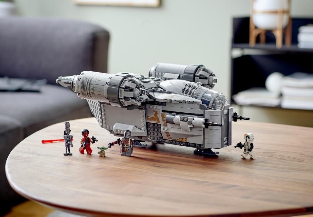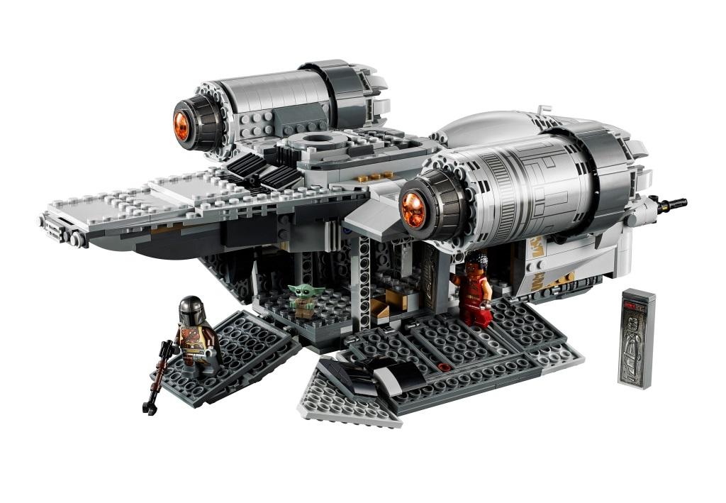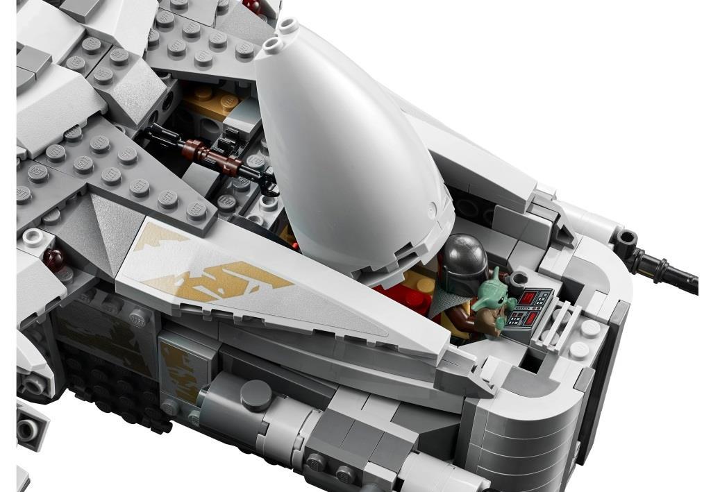 Фанатам сериала «Звездные Войны: Мандалорец» непременно стоит купить этот набор, ведь в наборе, как и в фильме, корабль Лезвие бритвы – одна из основных локаций, в которой происходит множество различных захватывающих событий. Из деталей набора собирается огромная летающая крепость Лезвие бритвы, являющаяся межгалактическим кораблем знаменитого воина из киновселенной Звездные Войны, мандалорца по имени Дин Джарин. Основной цвет модели корабля – серый. Космолет имеет просторную двухместную кабину, в которой удобно располагаются минифигурки главных героев. В верхней части летательного аппарата расположены два мощных двигателя. Силовые агрегаты установлены на небольших крыльях, в основании которых имеются пружинные шуттеры, необходимые для ведения стрельбы по врагам. Между двигателями находится спасательная капсула, на которой, в случае непредвиденной ситуации, можно улизнуть от преследователей. Именно с ее помощью храбрый мандалорец избавился от надоевшей ему компании Грифа Карги, когда тот пробрался на борт космического корабля. Нижняя палуба Лезвия бритвы представляет собой грузовой отсек, доступ к которому открывается при опускании боковых панелей обшивки корабля. Внутри отсека находится несколько слитков карбонита, с замороженными в них целями от предыдущих заказов. Под кабиной пилота, в передней части корабля, установлены две пушки, под обшивкой которых имеются две скрытые полости. С одной стороны находится отсек для транспортировки боеприпасов, а с другой – обустроенное спальное место главного героя. В комплектацию набора входят: Минифигурки: мандалорец, Гриф Карга, имперский разведчик и малыш, фигурка дроида IG-11. Оружие: бластерные винтовки и пистолеты. Аксессуары: запасные заряды к пружинным шуттерам, разделитель деталей. В собранном виде размеры корабля Лезвие бритвы составляют: 14х38х28 см.