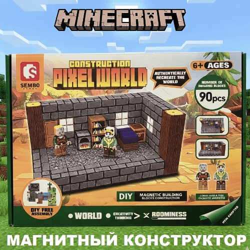 Погрузитесь в захватывающий мир пиксельной графики и творчества! Этот игровой набор от популярного бренда SEMBO BLOCK станет идеальным подарком для юных фанатов вселенных в стиле «Майнкрафт». Главная особенность набора — магнитное соединение блоков, что делает процесс сборки легким, быстрым и невероятно увлекательным. Уникальная магнитная конструкция: Блоки притягиваются друг к другу, позволяя создавать устойчивые стены и интерьер без лишних усилий. Стиль Pixel World: Дизайн набора вдохновлен популярными воксельными играми. Реалистичные детали интерьера: книжный шкаф, кровать, печь с огнем и окна. Развитие навыков: Сборка конструктора стимулирует мелкую моторику, развивает пространственное мышление, логику и творческие способности. Две эксклюзивные минифигурки: В комплекте идут два персонажа, которые помогут оживить созданный мир и придумать множество игровых сюжетов.