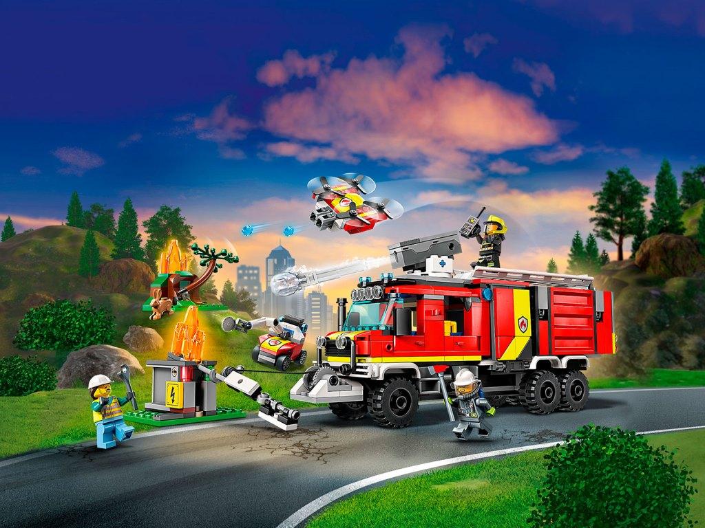 Внесите искру в детскую игру с тушением пожаров с помощью набора. Эта многофункциональная игрушечная пожарная машина поставляется со съемным центром управления, пожарным дроном и наземным дроном. Дети могут запускать различные элементы из грузовика и пожарного дрона, чтобы изобразить пожаротушение водой и пеной. Просто добавьте декорации к лесному и городскому пожару и 3 минифигурки, чтобы часами заниматься тушением пожаров!