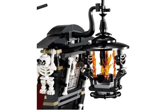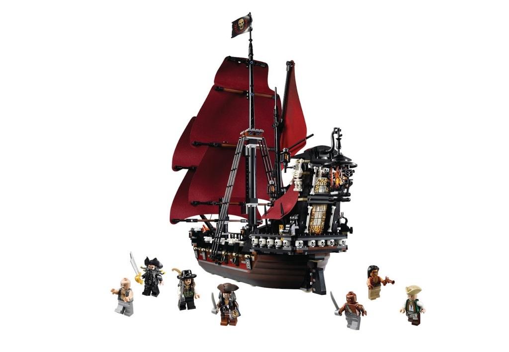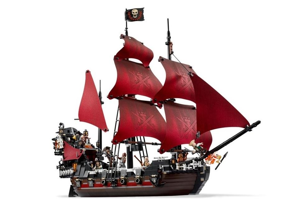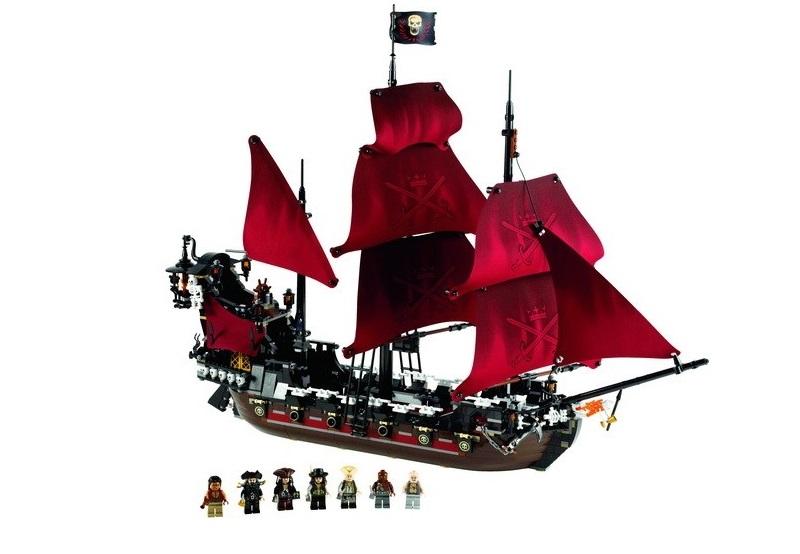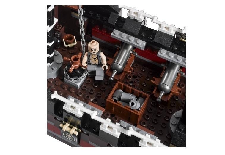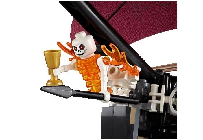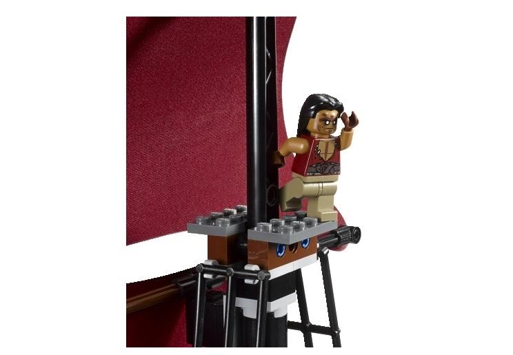 Огромный макет пиратского корабля Чёрной Бороды приведёт в восторг каждого, кто осмелится взять за такой большой набор. Тканевые паруса бордового цвета и детализированная палуба смогут обрадовать каждого любителя пиратов. В комплект включены 7 человечков. В набор входят минифигурки персонажей: Джек Воробей в треуголке со шпагой, Черная борода в шляпе с саблей, Анжелика в шляпе с пером и шпагой, Зомби-канонир с пистолетом, Зомби-квартирмейстер со шпагой, Зомби-писарь, кок в шляпе.