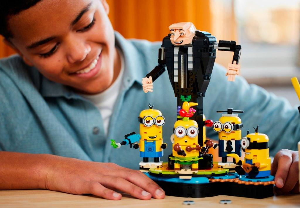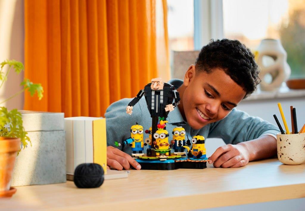 Оправдайте страсть ребенка к миньонам с конструктором «Грю и миньоны» для детей от 9 лет. Веселье начинается сразу после сборки: дети управляют подвижным Грю и танцующими миньонами. У большой фигурки Грю шарнирные руки, кисти и пальцы, благодаря которым дети могут сделать его любимые позы. В наборе пять сборных миньонов: Джерри с маракасами и фруктовой шляпой, секретный агент Дэйв с пропеллером и рацией, Миньон Биду с мегафоном, Мэл, играющий на гавайской гитаре, и Кевин со своим пукающим пистолетом. Миньоны расположены на вращающейся платформе, и когда дети поворачивают сидящего миньона, другие персонажи танцуют вокруг своего улыбающегося босса! Каждый миньон может двигать руками и держать аксессуары. Дети смогут снять с подставки четырех миньонов, чтобы изучить дополнительные игровые возможности.
