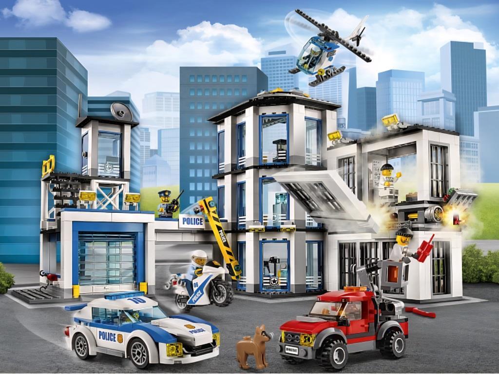Полицейский участок представляет собой комплекс зданий, в которых есть всё необходимое для работы защитников правопорядка. Условно всю конструкцию можно разделить на три части. Слева располагается главный вход, оборудованный жёлтым шлагбаумом с сигнальными огнями. За ним виден внутренний двор, на территории которого могут быть припаркованы полицейские транспортные средства, такие как патрульная машина и мотоцикл. Также их можно оставлять в гараже с прозрачными поднимающимися воротами. Это очень удобно, так как у гаража есть функция быстрого выкатывания автомобиля и держатели, на которых закреплен инвентарь, помогающий полицейским во время погони за преступниками. Чтобы въезд в участок находился под постоянным контролем, над гаражом поставлена дозорная вышка. Снаружи она окружена панорамными окнами, а внутри предусмотрено рабочее место для дежурного полицейского. Центральное трёхэтажное здание имеет угловатую форму. Над входом установлены яркие прожекторы, обеспечивающие безопасность в тёмное время суток. Пройдя через стеклянную дверь, можно очутиться внутри и рассмотреть интерьер. На первом этаже устроен пункт досмотра посетителей, оборудованный компьютером и столешницей. Второй и третий этажи занимают идентичные рабочие кабинеты с открывающимися дверями, компьютерами и удобными креслами. В одном из кабинетов поставлен кулер для воды, а в другом – кофеварка. Особого внимания заслуживает крыша здания. На ней открыта площадка для полицейского вертолёта, которым часто пользуются для патрулирования городских улиц. Справа выстроен тюремный блок. Он состоит из двух просторных секций, расположенных друг над другом. Кроме прочных решёток и замков в каждой камере есть кровать и унитаз. В основании верхней камеры заложен механизм разрушения. Если преступник, желающий освободить своего напарника, установит взрывчатку рядом с вентиляционной системой, а затем взорвёт её, то вылетит поршень, удерживающий несущую балку, и передняя стена упадёт вниз.