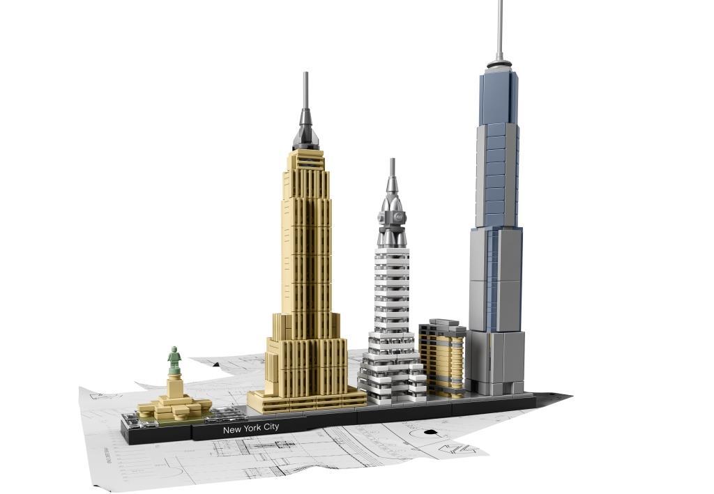 В наборе собраны пять наиболее известных сооружений имеющих полное право называться символом Нью-Йорка. Их череду возглавляет самая знаменитая достопримечательность. Это Статуя Свободы, являющаяся подарком французских граждан к столетию американской революции. Основанием монумента служит массивный пьедестал, в котором работает исторический музей. Сама скульптура выполнена из листов меди, которые в процессе окисления приобрели удивительный малахитовый оттенок. В правой руке «Леди Свобода» держит зажженный факел, а в левой – скрижаль с римскими цифрами, составляющими дату принятия Декларации независимости США (4 июля 1776). Продолжая экскурсию по Нью-Йорку, следует покинуть остров Свободы и переместиться на остров Манхэттен. Здесь нас ждёт встреча с легендарным 103-этажным небоскрёбом Эмпайр-стейт-билдинг, построенным в стиле ар-деко. Его высота составляет 443 метра, из которых 62 метра занимает шпиль. Изначально его планировали использовать как причальную мачту для дирижаблей, но из-за сильных ветров от этой идеи пришлось отказаться. В наши дни он функционирует как часть телекоммуникационного оборудования. По своему назначению Эмпайр-стейт-билдинг считается офисным зданием, но его могут посещать и туристы. Для них на 86-м и 102-м этажах расположены смотровые площадки с восхитительным видом. Также на Манхэттене располагается Крайслер-билдинг. Эта высотка насчитывает 320 метров и 77 этажей, что по современным меркам не так уж и высоко. Прославилось здание благодаря своему необычному фасаду, повторяющему форму колёсных дисков для автомобилей марки «Крайслер». Его неоднократно демонстрировали в культовых американских фильмах, а комиссия по архитектуре, оценив художественный подход дизайнера, определила небоскрёб как «Самый красивый в Нью-Йорке». Абсолютным рекордсменом стал Центр Международной торговли 1, построенный в 2013 году. Его конструкция, выполненная из стекла и бетона, поднимается на высоту 541 метра, небоскрёб считается самым высоким офисным зданием в мире