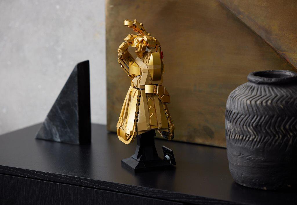 Набор Перчатка бесконечности — это сложный проект сборки для взрослой аудитории, который порадует фанатов детализированной моделью грозного оружия из множества комиксов и фильмов киновселенной. Перчатка бесконечности — легендарный специальный предмет, родом из комиксов. Она способна удержать в себе энергию всех шести Камней бесконечности, каждый из которых наделяет своего обладателя уникальной способностью. Для каждого из Камней в золотом корпусе перчатки предусмотрено свое место. Объединенная энергия Камней является главной разрушительной силой. В руках беспощадного межгалактического тирана Таноса Перчатка бесконечности является грозным оружием, способным уничтожить Вселенную или полностью поработить ее. Из деталей набора собирается эксклюзивная, отлично детализированная модель Перчатки бесконечности. Перчатка выполнена из деталей золотого и бежевого цветов. Модель имеет подвижные пальцы, фаланги которых собраны с использованием шарнирных соединений, поэтому без труда можно воссоздать щелчок пальцев Таноса за миг до катастрофы вселенского масштаба. В тело Перчатки инкрустированы Камни бесконечности, выполненные из разноцветных деталей. Каждый из них занимает свое место, точь-в-точь такое же, как это показано в фильмах киновселенной. Модель Перчатки бесконечности водружена на прочное основание, собранное из деталей черного цвета. В подножье пьедестала имеется информационная табличка с названием и кратким описанием экспоната. Размеры Перчатки бесконечности составляют: 31х13х11 см в высоту, длину и ширину соответственно.