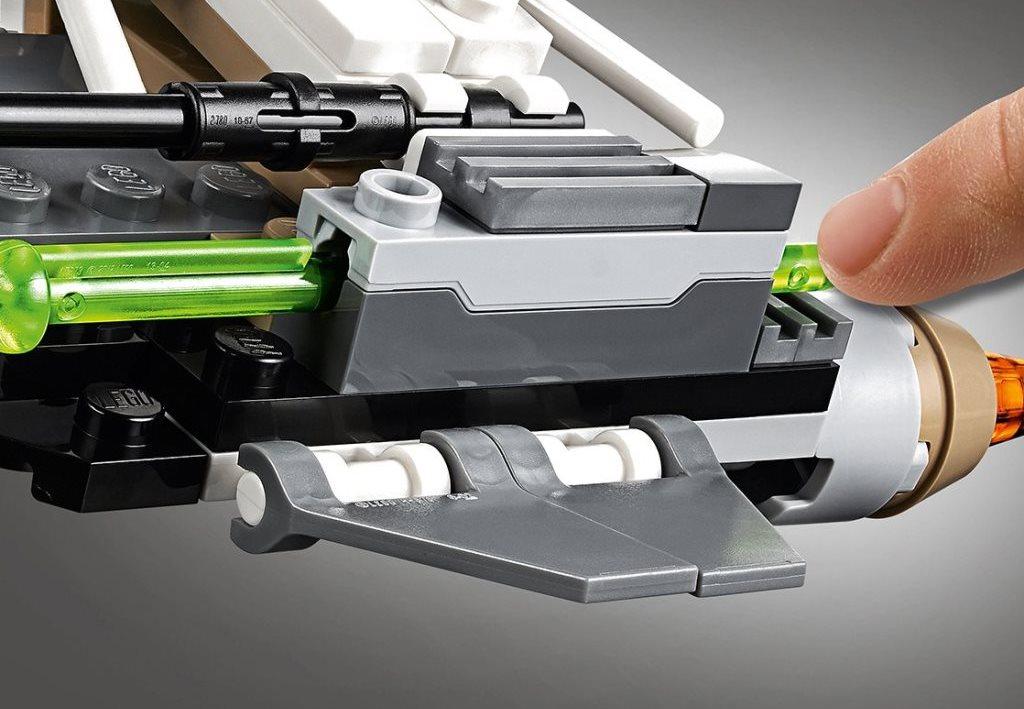 Загружай запасную ракету в багажный отсек Перехватчика TIE, занимай место в кабине пилота, и в составе эскадрильи истребителей приступай к выполнению увлекательных миссий по защите заправочной станции Колосс! Противостояние на Колоссе Сюжетная линия набора основана на событиях, показанных в популярном мультипликационном сериале «Звездные Войны Сопротивление», в котором одним из ответвлений сюжета является защита мобильной заправочной станции Колосс - важной опорной и ресурсной базы сил Сопротивления. Для этой цели был специально нанят отряд пилотов-асов, ветеранов Галактических войн, виртуозно владеющих управлением СИД истребителей. Одним из таких летчиков, составляющих костяк отряда, является Грифф Халлоран, который пилотирует Перехватчик TIE с позывным «Черный Ас». Из деталей набора собирается подробная, хорошо детализированная модель звездного истребителя, некогда стоявшего на вооружении Галактической Империи. Перехватчик TIE выполнен из деталей серого, черного и белого цветов. Он имеет два мощных крыла удлиненной формы, придающих космическому кораблю стремительный внешний вид, и позволяющих пилоту выполнять потрясающие воображение маневры. По краям крыльев установлены пружинные шутеры, стреляющие мощными ракетами. Летательный аппарат оборудован открывающейся кабиной пилота, в которой удобно располагается одна минифигурка. В задней части истребителя имеется съемная дверь грузового отсека, в который помещается запасной заряд для стрельбы из пружинных шутеров. В состав конструктора включены: Минифигурки: По Демерон и Грифф Халлоран; Фигурка дроида ВВ-8; Оружие: два бластерных пистолета; Аксессуары: шлем пилота истребителя, прическа Гриффа Халлорана, запасная ракета для стрельбы из шуттера. В собранном виде модель Перехватчика TIE имеет следующие размеры – 8х36х21 см в высоту, длину и ширину соответственно.