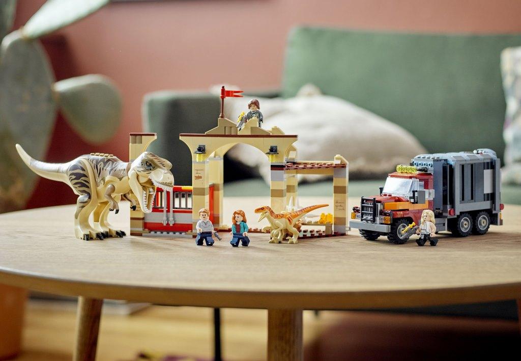 Исследователи научились воссоздавать вымершие виды животных, но эти существа очень опасны для людей! Теперь каждый желающий может своими глазами увидеть, как храбрецы загонят обратно случайно вырвавшихся на свободу монстров. Для этого нужно купить набор "Побег атроцираптора и тираннозавра" в нашем магазине по доступной цене, собрать его и погрузиться в мир фантастических приключений! От ученых снова сбежали динозавры. В этот раз две самые опасные особи вырвались из плена и готовы атаковать мирных граждан. Группа исследователей моментально выезжает на место обнаружения беглецов. В арсенале спасателей есть всё необходимое для захвата, обездвиживания и транспортировки хищников. Фрагмент рынка с арочным въездом и красными воротами выполнен в аутентичном стиле. Рядом с въездом беглецов поджидает специально оснащенный грузовик с электронным управлением замка и пандусом, способным выдержать вес проходящего по нему динозавра. Размеры рынка с аркой: 18х26х9 см. В наборе есть минифигурки: Оуэн Грэди, Клэр Диринг, Рейн Делакур и Сойона Сантос. Конструктор наполнен множеством аксессуаров и подробных деталей, среди которых два яйца динозавров, пистолеты, заряженные транквилизаторами, ядовитый паук. Неожиданное происшествие случилось в один из прекрасных дней. Сбежали сразу два опасных динозавра. Теперь ученым предстоит исправить ошибки и вернуть спокойствие людям. Они берут оружие, способное обездвижить опасных монстров, и храбро бросаются в атаку. Тираннозавр должен быть возвращен в загон, а атроцираптора увезут в грузовике. Набор понравится поклонникам динозавров и любителям качественных ярких инсталляций. Конструктор может стать прекрасным подарком друзьям и близким или украсить вашу собственную коллекцию.