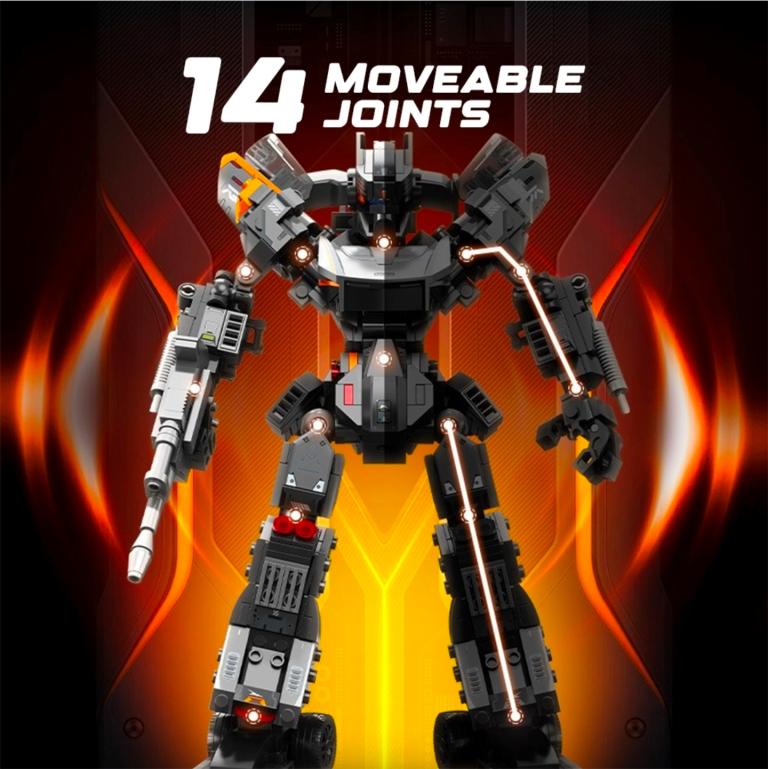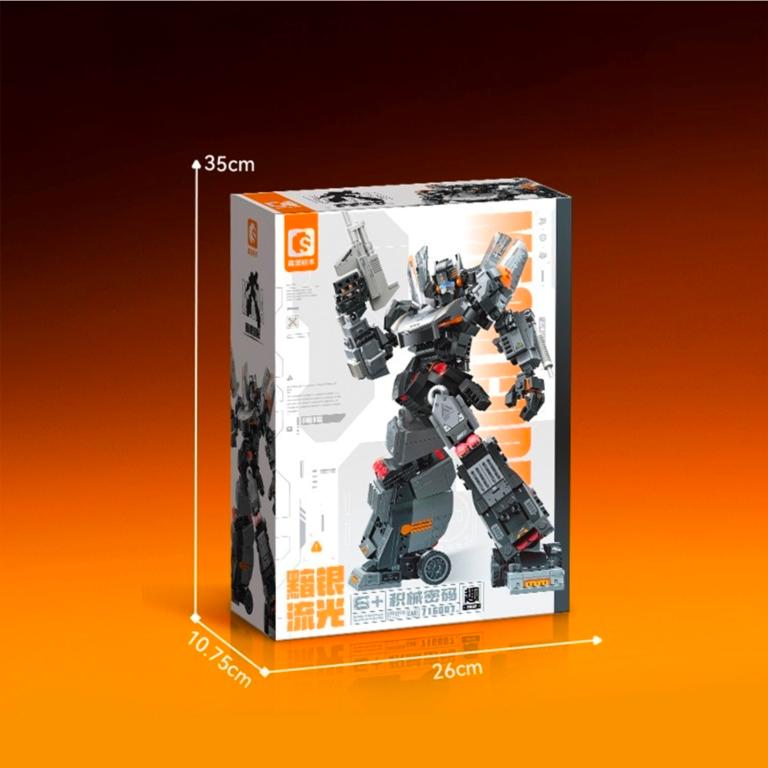 Погрузитесь в мир футуристических сражений с этой коллекционной моделью. Этот детализированный мех сочетает в себе эстетику классических трансформеров и современный дизайн боевых машин. Особенности модели: - Высокая подвижность: Робот оснащен 14 шарнирными соединениями, что позволяет придавать ему любые динамичные боевые позы. Модель устойчива и отлично подходит как для игры, так и для полки коллекционера. - Дизайн вдохновлен эстетикой суперкаров, что прослеживается в элементах брони и кабине на груди меха. - Вооружение: В комплект входит мощный футуристический бластер, который надежно фиксируется в руке робота. - Стильный дизайн: Глубокий черный цвет с серебристыми и ярко-красными акцентами создает образ грозного ночного охотника. Преимущества: - Развитие навыков: Сборка 789 деталей отлично тренирует мелкую моторику, логику и усидчивость. - Совместимость: Детали полностью совместимы с конструкторами мировых брендов. - Подарочная упаковка: Большая презентабельная коробка с качественной полиграфией — идеальный вариант для подарка на день рождения или праздник. Преимущества и особенности: - Высокая подвижность: Робот оснащен 25 подвижными шарнирами, что позволяет придавать ему любые динамичные боевые позы. - Детализация: В конструкции корпуса используются 14 точек со скрытыми механизмами и уникальные декоративные элементы. - Вооружение: В комплект входит массивное футуристическое оружие (пушка с красным наконечником), которое мех может держать в руках. - Дизайн: Яркое сочетание оранжевого, черного и серого цветов с качественными принтами на деталях.