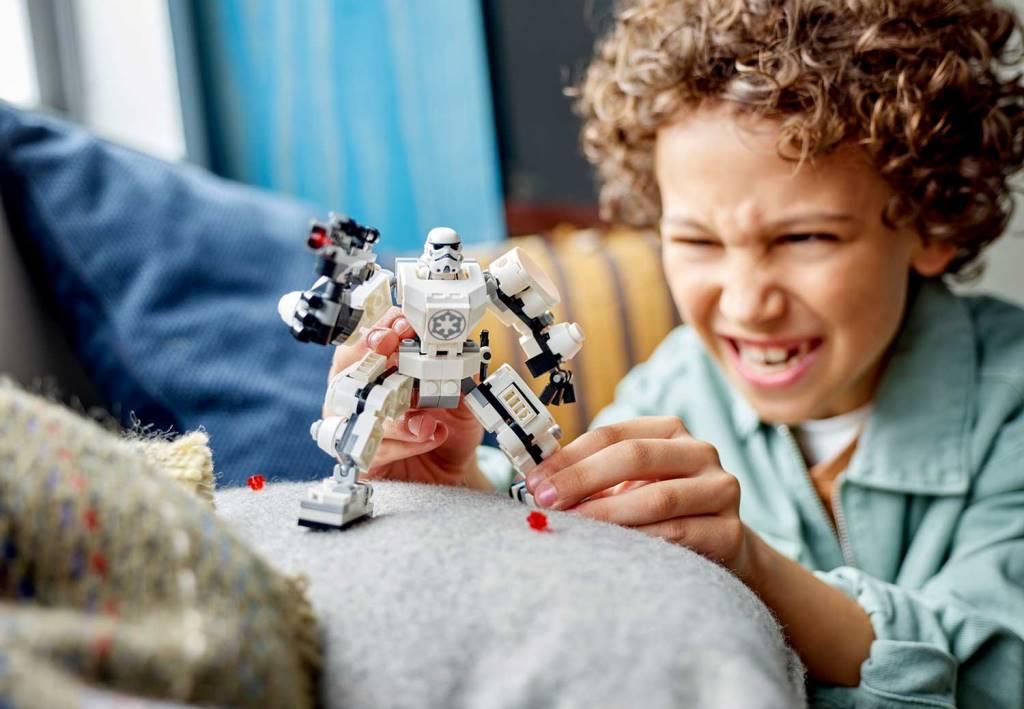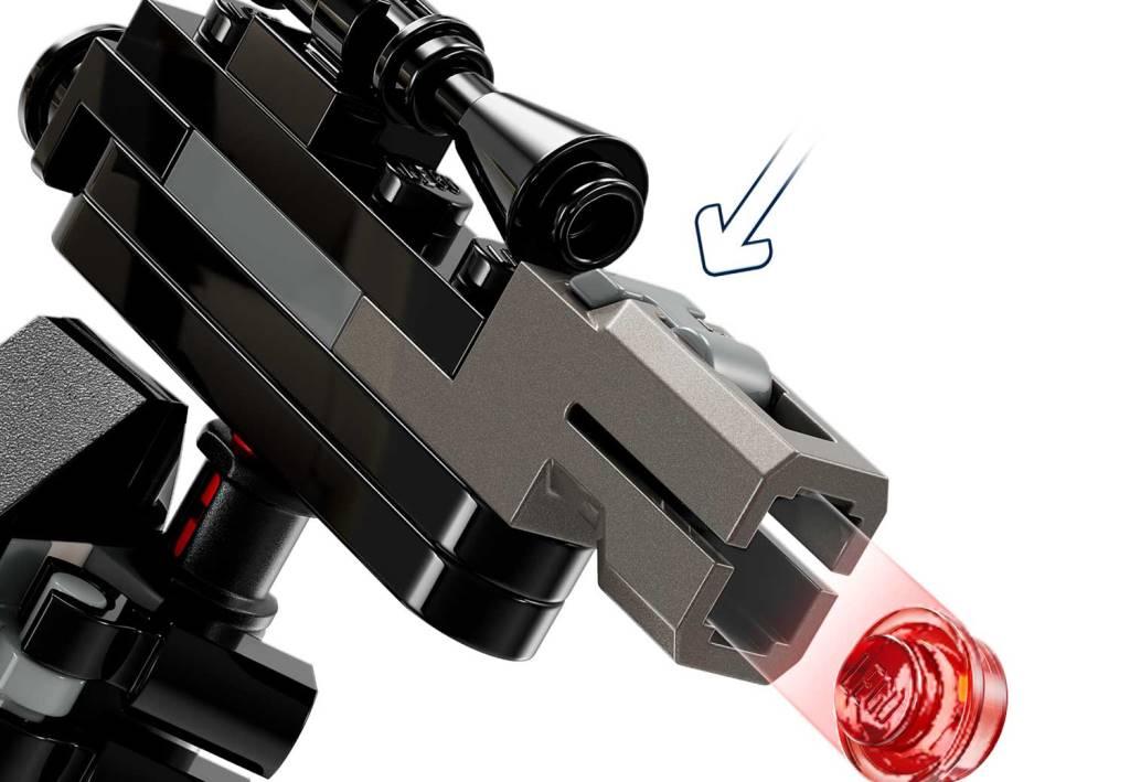 Подарите маленьким детям захватывающее знакомство со вселенной, построенной из кубиков, с помощью этого набора для игры и демонстрации. В подвижном механическом костюме есть открывающаяся кабина для минифигурки штурмовика, зажим для его бластера и хватательные руки, чтобы держать большой бластер, стреляющий шипами.