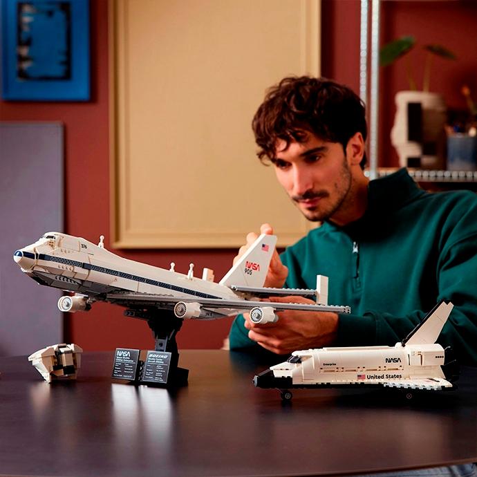 Погрузитесь в историю аэрокосмических достижений, воссоздающим легендарный тандем - самолёт Boeing 747 с закреплённым на нём космическим шаттлом NASA «Энтерпрайз». Этот коллекционный конструктор - не просто модель, а памятник инженерной мысли, воплощающий смелость человеческих устремлений к звёздам. Из деталей набора вы сможете собрать две тщательно проработанные модели. 1. Boeing 747 - легендарный «Джамбо Джет» в специальной конфигурации самолёта носителя. 2. Космический шаттл «Энтерпрайз» - первый полноразмерный прототип орбитального корабля программы Space Shuttle. Он имеет: Съёмные двигатели, позволяющие рассмотреть конструкцию Выдвижное шасси из 18 колёс, передающее масштаб настоящего лайнера Хвостовой обтекатель, добавляющий аутентичности облику Грузовой отсек, открывающий доступ к внутреннему пространству Систему крепления для шаттла, воспроизводящая реальное техническое решение Размер модели в собранном виде составляет 27х63х53 см.