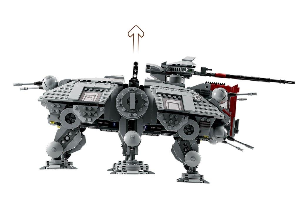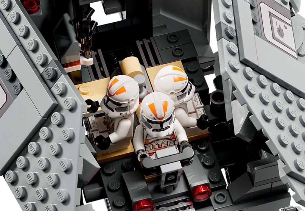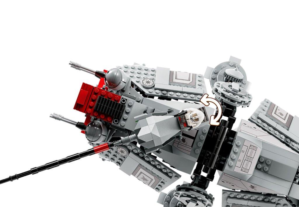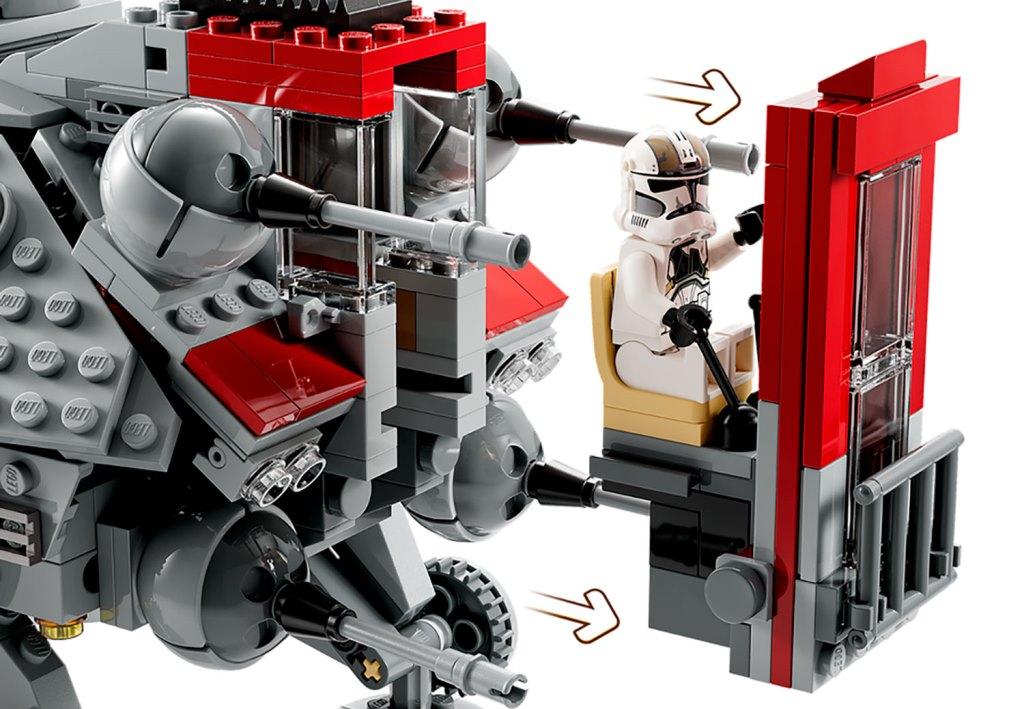 Воссоздай большой шагоход АТ-ТЕ чтобы разыграть сражение солдат-клонов с боевыми дроидами, которое было показано в фильме “Звездные войны: Месть ситхов”. Массивная машина уверенно стоит на шести подвижных опорах. Она вооружена шестью небольшими пушками: четыре спереди и две сзади; а также вращающейся тяжелой бластерной пушкой, расположенной на крыше. Для управления турелью предусмотрено специальное место для клона-стрелка. У шагохода АТ-ТЕ раскрываются боковые стены-двери, обеспечивая доступ к каютам, где есть зона отдыха клонов, а также место для хранения оружия и боевых снарядов. Внутри машины есть место для семи минифигурок. Выдвижная темно-красная кабина со стеклянной дверью вмещает одну фигурку – клона-командира, который управляет шагоходом. Для удобства переноски и игры, сверху танка АТ-ТЕ предусмотрена черная ручка, за которую удобно поднимать шагоход. В комплект входят 8 минифигурок: командир Коди, 3 солдата-клона и один клон-стрелок 212-го штурмового батальона, 3 боевых дроида; также из деталей набора вы сможете собрать небольшого дроида-паука. Размеры Шагохода АТ-ТЕ в собранном виде: 19х44х24 см.