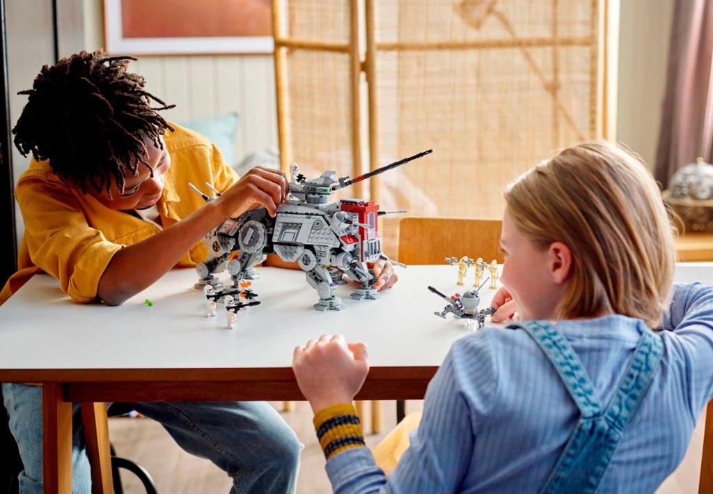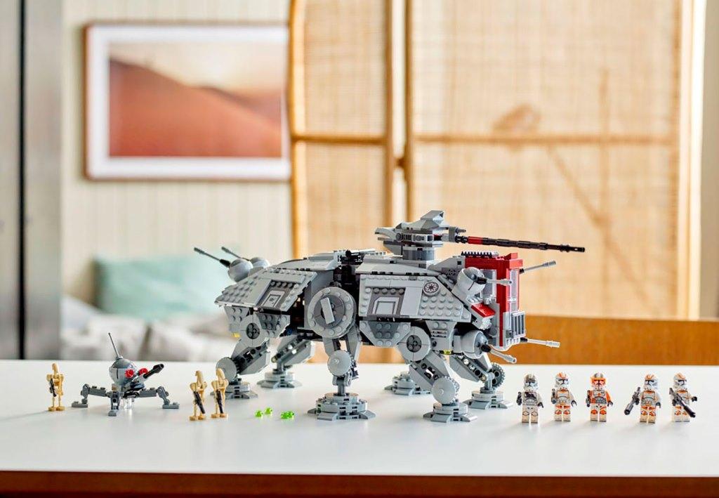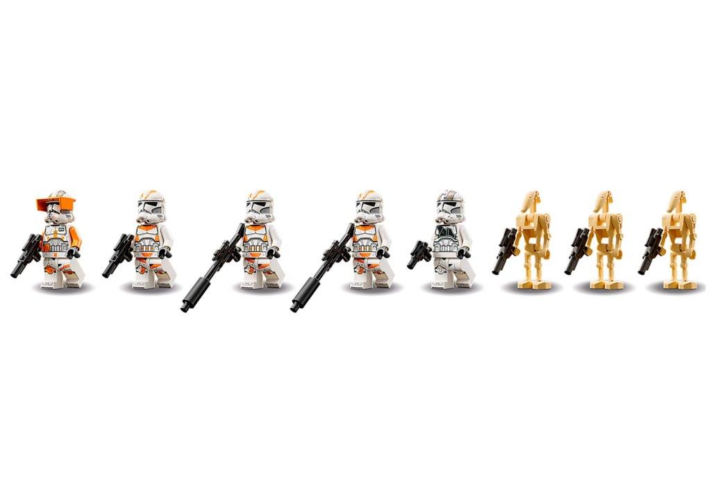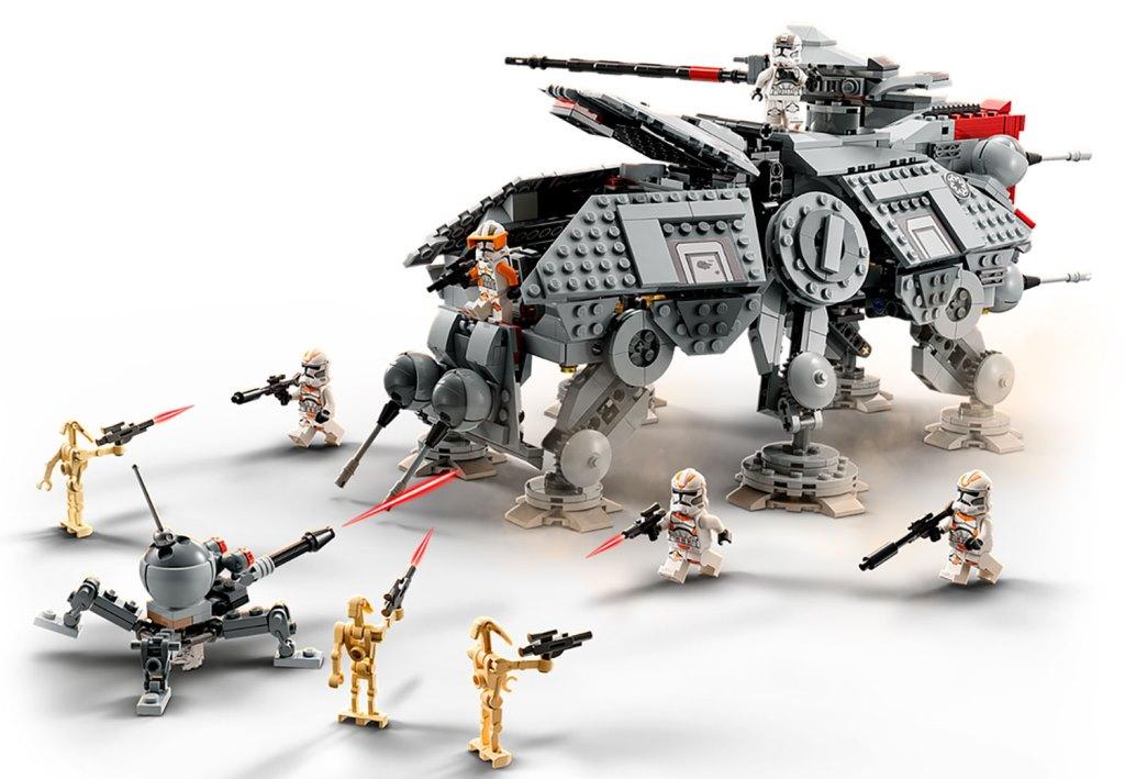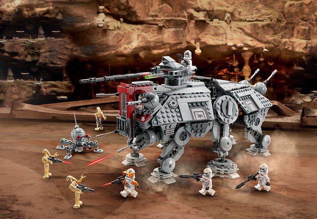 Воссоздай большой шагоход АТ-ТЕ чтобы разыграть сражение солдат-клонов с боевыми дроидами, которое было показано в фильме “Звездные войны: Месть ситхов”. Массивная машина уверенно стоит на шести подвижных опорах. Она вооружена шестью небольшими пушками: четыре спереди и две сзади; а также вращающейся тяжелой бластерной пушкой, расположенной на крыше. Для управления турелью предусмотрено специальное место для клона-стрелка. У шагохода АТ-ТЕ раскрываются боковые стены-двери, обеспечивая доступ к каютам, где есть зона отдыха клонов, а также место для хранения оружия и боевых снарядов. Внутри машины есть место для семи минифигурок. Выдвижная темно-красная кабина со стеклянной дверью вмещает одну фигурку – клона-командира, который управляет шагоходом. Для удобства переноски и игры, сверху танка АТ-ТЕ предусмотрена черная ручка, за которую удобно поднимать шагоход. В комплект входят 8 минифигурок: командир Коди, 3 солдата-клона и один клон-стрелок 212-го штурмового батальона, 3 боевых дроида; также из деталей набора вы сможете собрать небольшого дроида-паука. Размеры Шагохода АТ-ТЕ в собранном виде: 19х44х24 см.
