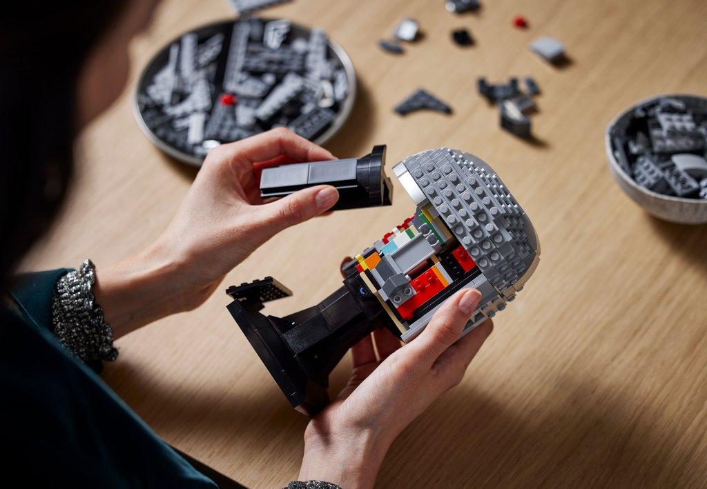 Легко погрузиться с головой в творчество, если в твоих руках оказался конструктор «Шлем Мандалорца». Казалось бы, в наборе практически только серые кубики — разве это может быть интересно? Оказывается, может! Коллекционная копия серебристой защиты воинствующих мандалорцев — беспроигрышный вариант подарка поклонникам сериала, а также тем, кто ценит точность сборки, тщательно подобранные оттенки, формы и размеры миниатюрных пластиковых элементов. Кочевники мандалорцы очень воинственны, храбры и грозны. Именно поэтому их экипировка представляет огромный интерес для коллекционеров. Особенное восхищение вызывает шлем. Ведь он надежно защищает лицо воина от любопытных глаз. Ходит легенда, что бронь ни за что не снимается перед посторонними людьми. Почему? Все просто — сняв шлем, мандалорец перестает быть мандолорцем. Он больше никогда не сможет снова надеть головной убор воина, он больше никогда не сможет принимать участие в войнах, он больше никогда не будет зачислен в ряды элитной космической армии. Детализированная копия шлема позволит максимально творчески и увлекательно провести время, разбираясь в инструкции и собирая воедино часть легендарной амуниции воинов Галактики. Кубики из множества оттенков серого помогут создать эффект металлических пластин, агрессивно переливающихся хоть под лучами Солнца, хоть под мягким светом Луны, хоть под нежным мерцанием далеких планет. Кроме основных элементов, в набор входят пластины для сборки устойчивой подставки с табличкой, снабженной контрастной надписью. Размеры шлема в собранном виде: 18х12х11 см.