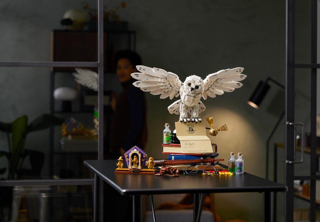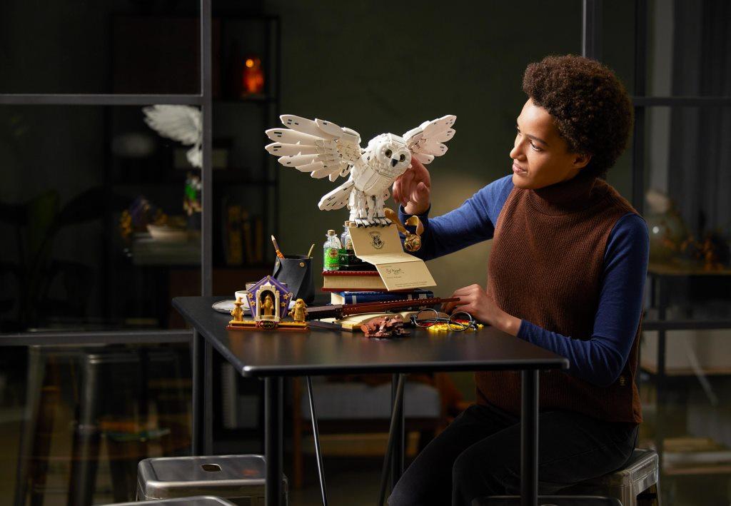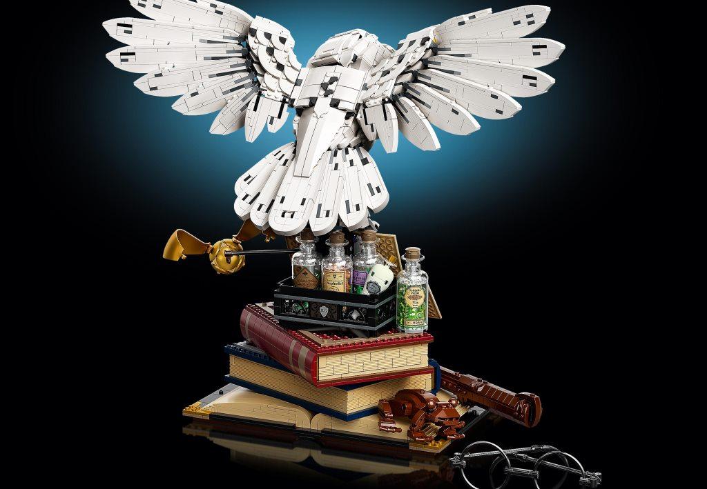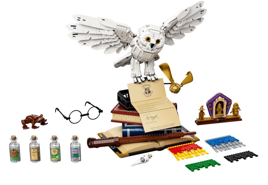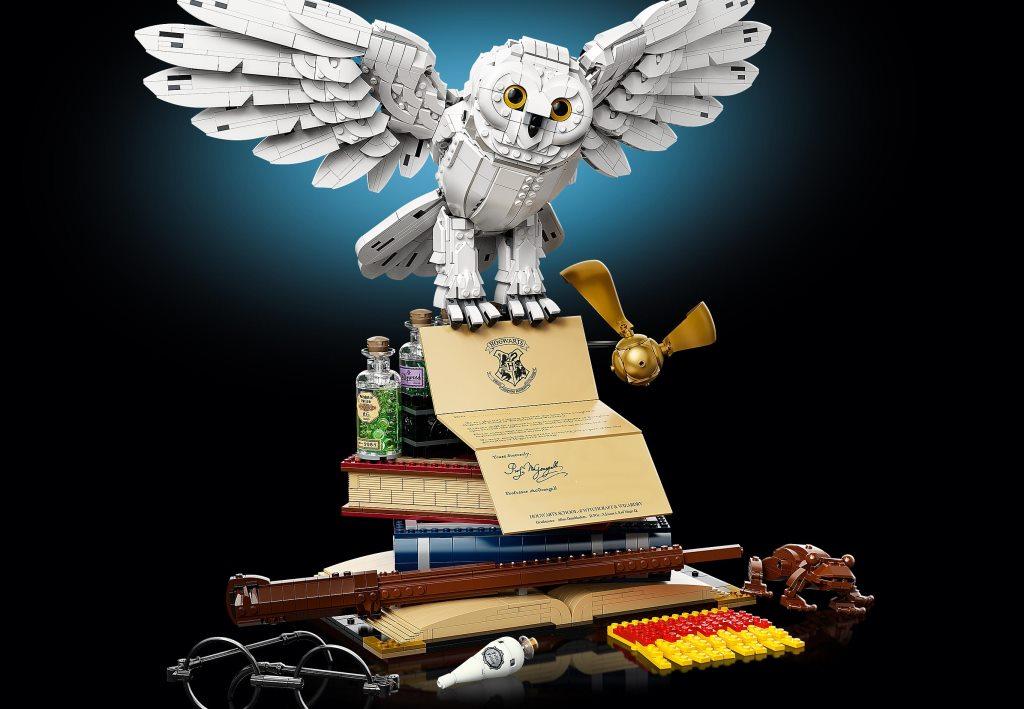 Заполучи все знаковые символы, связанные со школой юных волшебников Хогвартс. Собери волшебную палочку Гарри, шарф Хогвартса, дневник Тома Реддла и другие. Конечно же, есть и Букля, которая принесла приглашение на учебу в Хогвартс. Эксклюзивный набор включает самые запомнившееся объекты. Тебя ждет сборка волшебной палочки Гарри, совы Букли, дневника Тома Реддла и других известных символов книг и фильмов. В юбилейном комплекте, посвященном 20-летию этой серии наборов, собраны предметы, которые уже стали символами этой невероятной истории о мальчике-маге. Припомни, как Гарри Поттер познавал мир волшебства, с какими приятными сюрпризами столкнулся и каким опасностям противостоял. Здесь есть всё, что нужно для обустройства мини-экспозиции о героях любимых книг. Размести на столе очки Гарри и его волшебную палочку, шоколадную лягушку Рона. Тут же поставь поднос с зельями Гермионы, на котором есть такие эффективные средства, как «жидкая удача» Феликса Фортунатиса, жабросли, оборотное зелье. Добавь к ним дневник Реддла, книги и золотой снитч. Из деталей ты сможешь собрать шарф ученика Хогвартса, причем, оформить его в цветах каждого из факультетов. Собери белоснежную красавицу-сову Буклю, которая держит в когтях уже открытое письмо с приглашением Гарри в Хогвартс. Расположи Буклю наверху экспозиции — и можешь показывать свою выставку Поттеромана друзьям. В комплект входят золотые минифигурки преподавателей: Альбуса Дамблдора, Рубеуса Хагрида, а также Минервы Макгонагалл. Есть и юбилейная подставка, украшенная эксклюзивной надписью в честь двадцатилетия серии о Гарри Поттере. Превращай разрозненные детали в известные символы и наслаждайся сборкой. Размеры модели в собранном виде — 44×50×33 см.