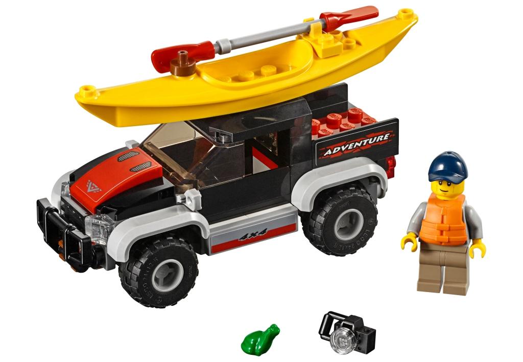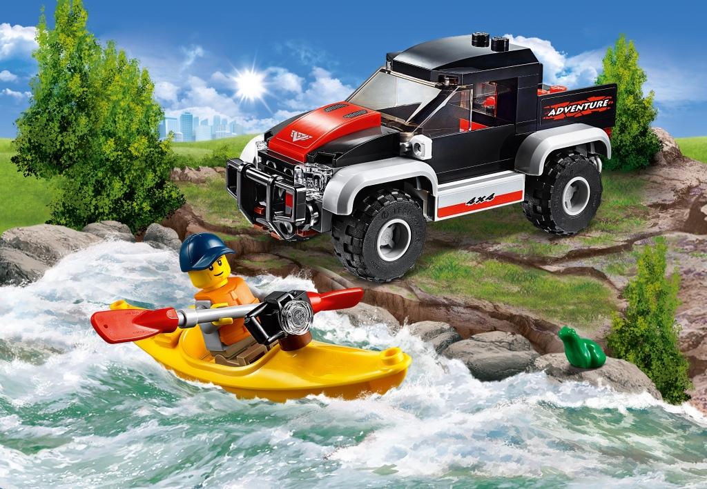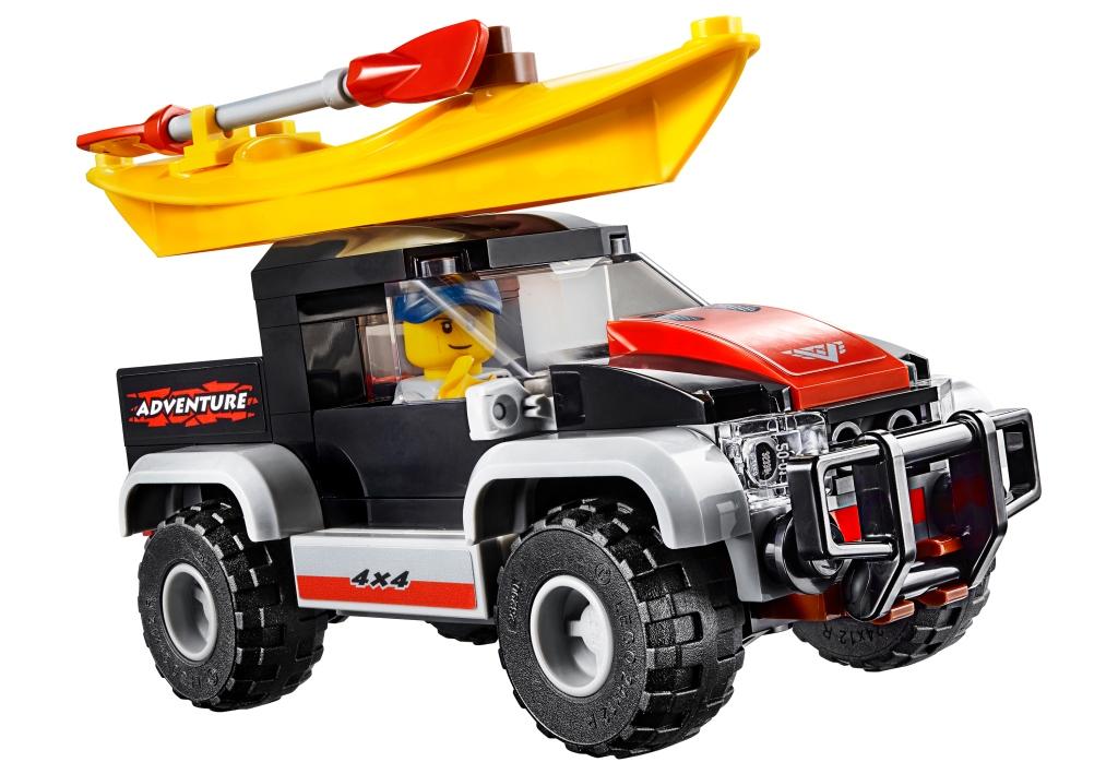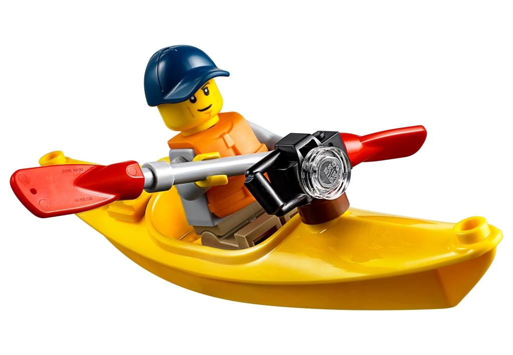Нечего сидеть в душном мегаполисе! Скорее запрыгивай в пикап и отправляйся за пределы, чтобы сплавиться на байдарке по горной реке. А чтобы было что вспомнить – обязательно прихвати с собой фотоаппарат! Из деталей конструктора собирается внедорожник черного цвета на больших резиновых колесах. Автомобиль имеет кабину со съемной крышей, в которую помещается одна минифигурка. В задней части машины расположен большой кузов, в который складывается снаряжение, необходимое в этом увлекательном и интересном путешествии. В передней части автомобиль оборудован большим и крепким бампером, а весь кузов пикапа украшен яркими наклейками, подчеркивающими его внедорожное предназначение. Одноместная байдарка желтого цвета во время перевозки закрепляется на крыше пикапа. В ее передней части предусмотрено крепление для фотоаппарата, чтобы у путешественника была возможность запечатлеть яркие моменты и встречи с обитателями животного мира во время своего увлекательного путешествия по реке. В задней части лодки имеется крепление, в которое устанавливается весло, в моменты, когда оно не используется. В состав конструктора входят: Минифигурка путешественника. Фигурка зеленой лягушки. Аксессуары: весло, спасательный жилет, фотоаппарат. Размеры объектов в собранном виде: внедорожник – 5х11х5 см в высоту, длину и ширину; байдарка – 11 см в длину.