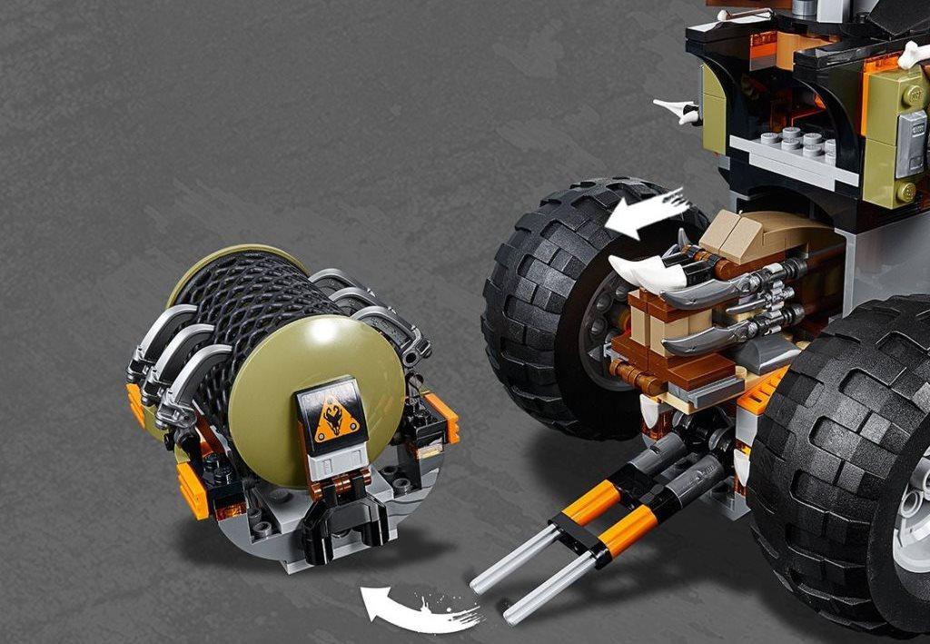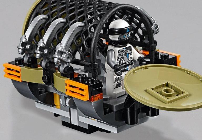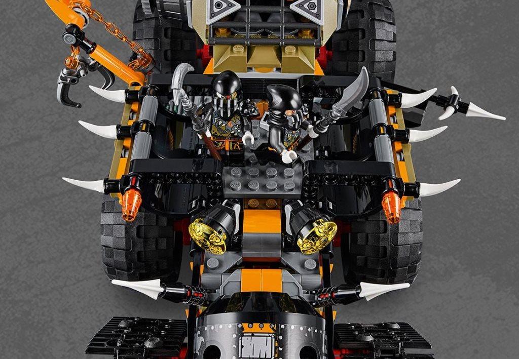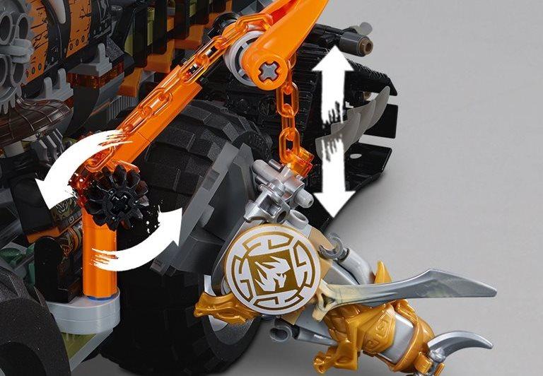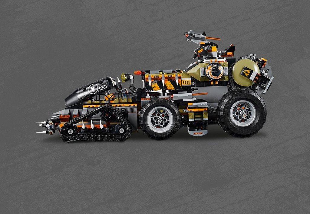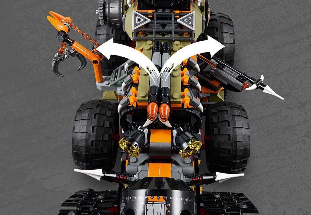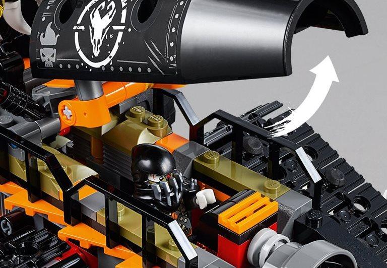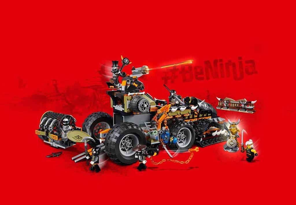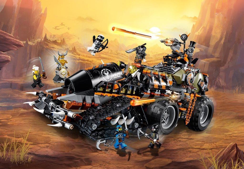 Доспехи Дракона, так необходимые команде ниндзя, оказались у Охотников на Драконов под предводительством Железного Барона. Значит, схватка неизбежна! С набором Стремительный странник помоги отважным ниндзя добыть так необходимые им артефакты. Машина Охотников на драконов “Стремительный странник” была специально создана для суровых условий пустынь Первого мира Ниндзяго. И изначальное его предназначение – охота на драконов. Он снабжен огромными колесами и гусеницами для большей проходимости по пескам пустынь. В его оснащение входит закрытая от пустынных песков кабина, ловушка для драконов, отсек для команды охотников, клетка-тюрьма, в которую помещается добыча или пленники. Внутри корпуса надежно спрятан арсенал боевого оружия и главный артефакт – Доспехи Дракона. Из вооружения боевой машины следует отметить пружинный шутер, вращающийся вокруг своей оси на 360 градусов, и гарпунную пушку, установленную по правому борту танка. На левой стороне машины имеется подъемный механизм для захвата добычи. Особый восторг вызывает хитроумная реализация механизма ловушки, которая захлопывается, как только добыча оказалась на центральной площадке! Поэтому ниндзя следует быть предельно осторожными, оказавшись на ней! В состав набора входят следующие минифигурки: Зейн; Джей; Юный Ву; Железный Барон; Хэви Металл; Дуло; Крушитель черепов. Обилие оружия и аксессуаров делают данный набор невероятно играбельным! К интересным особенностям набора следует отнести тот факт, что минифигурка Крушителя черепов входит только в этот набор. А полный комплект Доспехов Дракона, помимо Стремительного странника, встречается еще в Пещере драконов, что делает его поистине желанным приобретением! В собранном виде Стремительный странник поражает своими размерами! Они составляют 49х23х18 см в длину, ширину и высоту соответственно.