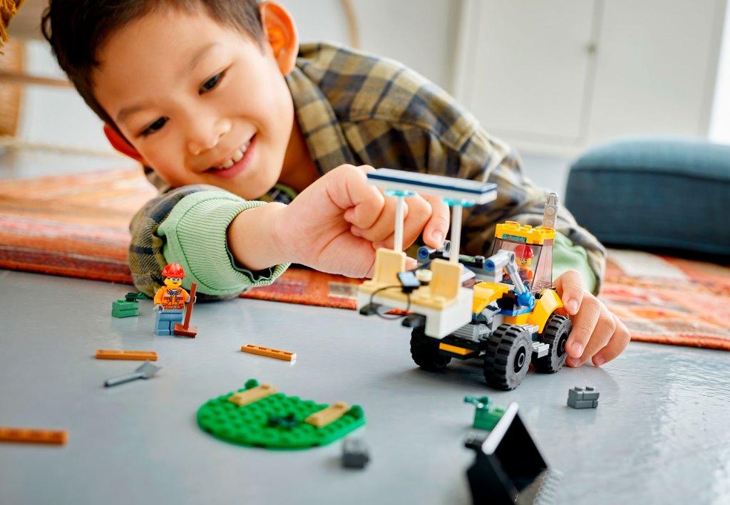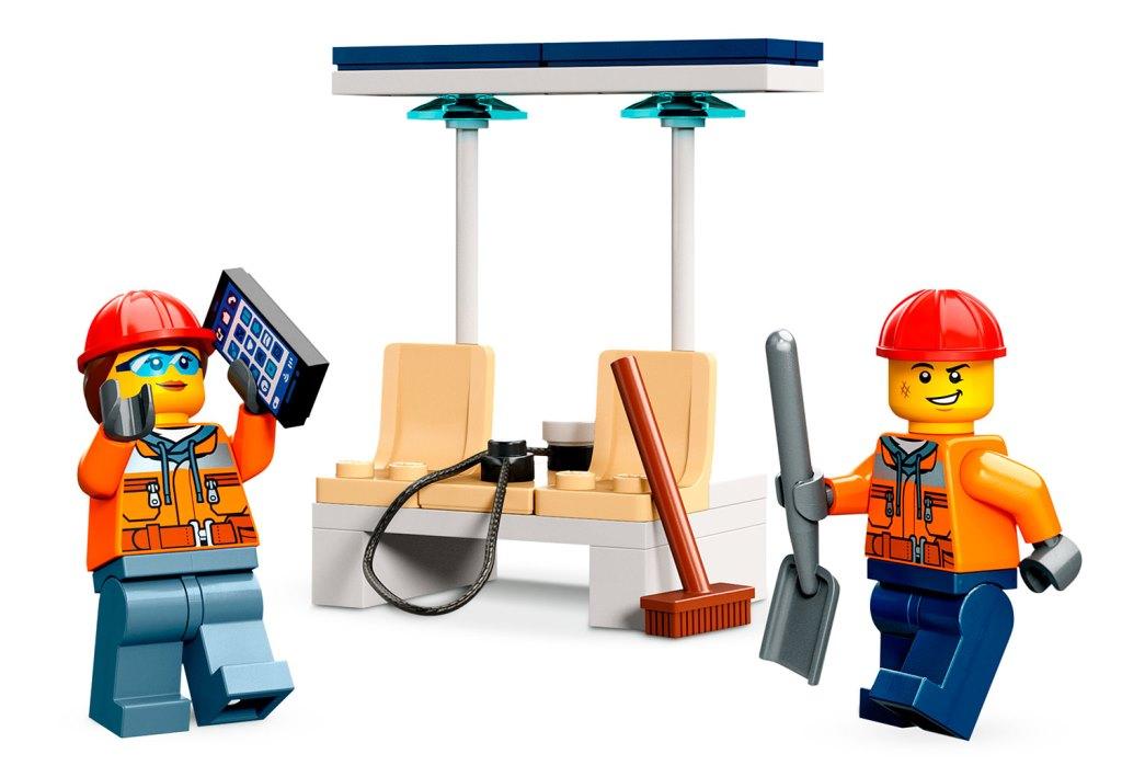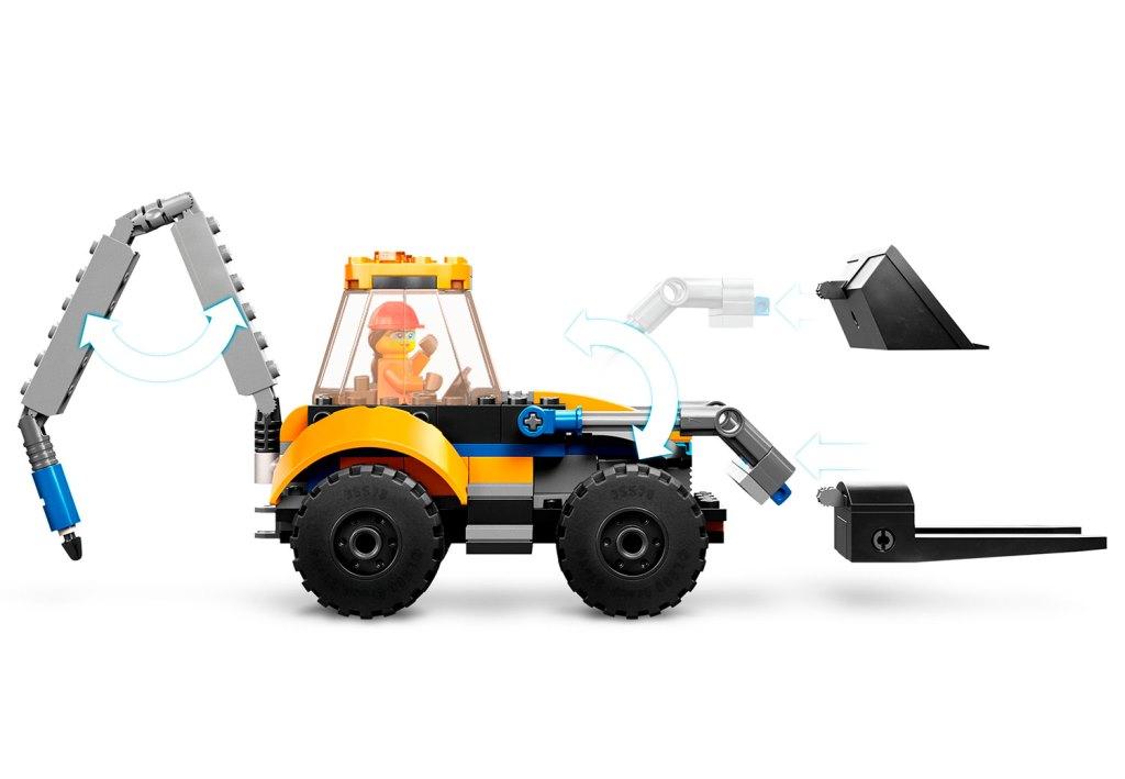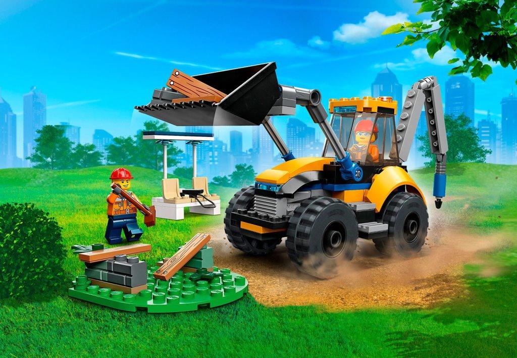 Строительный экскаватор незаменим на стройке! Он оснащен отбойным молотком сзади, а впереди у вас есть два варианта сменных ковшей на выбор: обычный или для погрузки. Расчистите строительную площадку от мусора, подготовьте место и установите удобную скамейку с навесом и функцией зарядки смартфонов. Меняйте ковши экскаватора в зависимости от поставленных задач, а опытные строители отлично справятся с работой. В комплект входят 2 минифигурки: это строители – мужчина и женщина. Игровые аксессуары: коричневая щетка, серая лопата, смартфон. Размеры строительного экскаватора в собранном виде: 11х18х6 см.