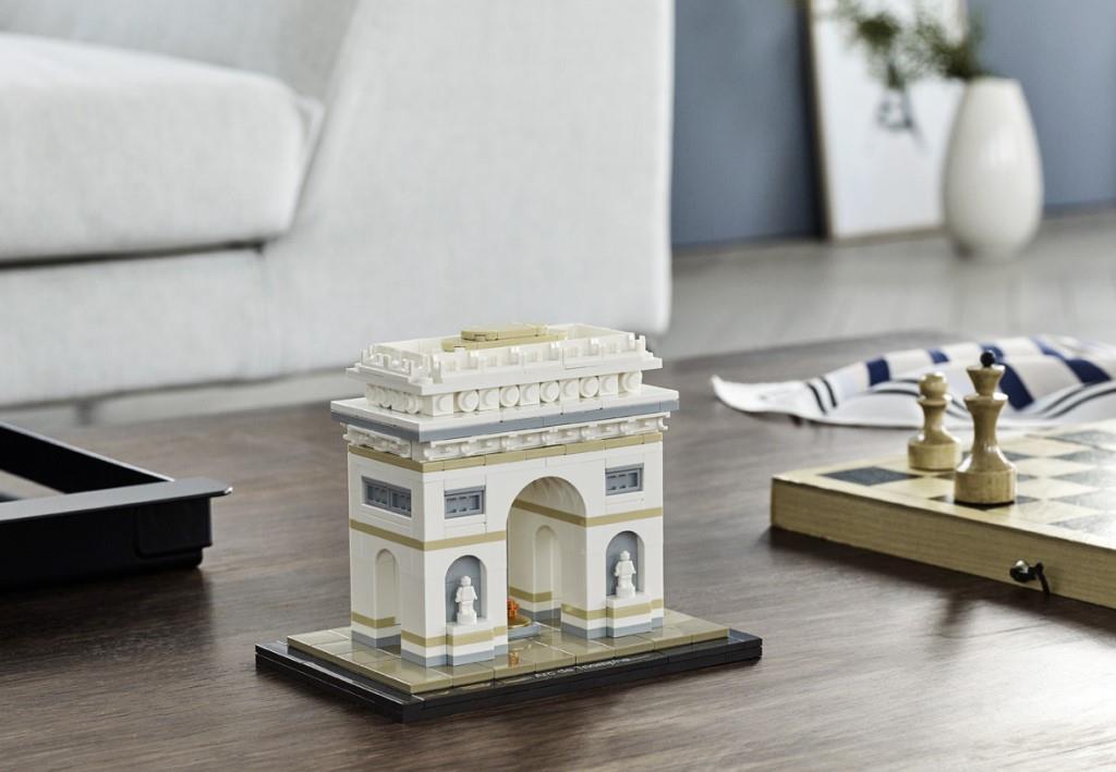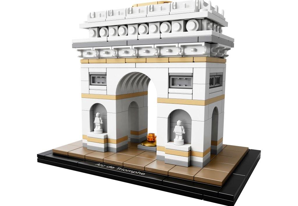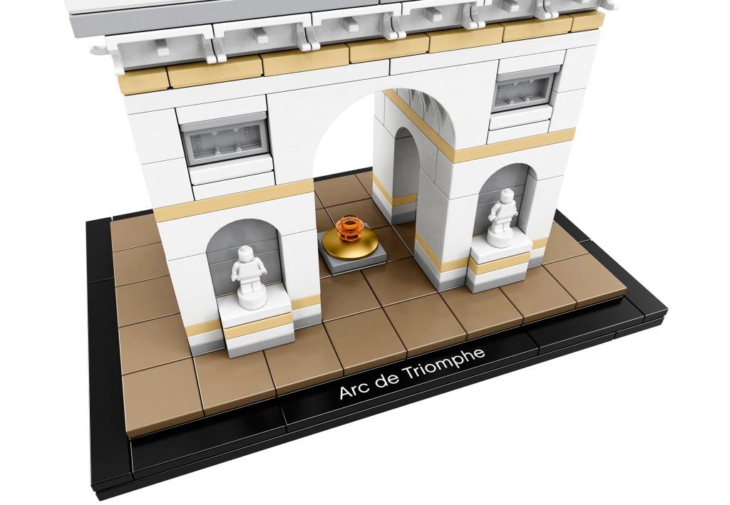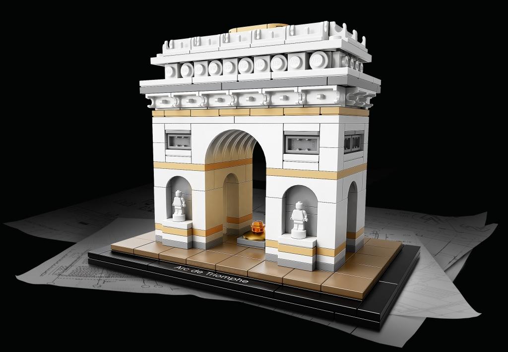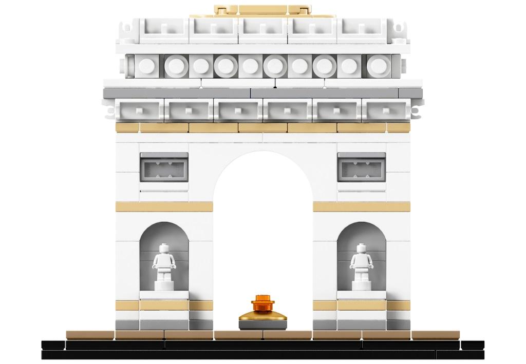 Триумфальная арка в Париже — это архитектурный монумент, ставший одним из узнаваемых символов столицы Франции. Выполненный в античном стиле, памятник символизирует славу Великой армии Наполеона, победившей в Битве под Аустерлицем. Арка возведена в самом центре города на площади Шарля де Голля. От этого места в разные стороны расходятся 12 проспектов, самый известный из которых Елисейские поля. Благодаря такому расположению, Триумфальную арку видно отовсюду. Величественно возвышаясь над соседними зданиями, она поражает воображение своей монументальностью. Высота 49,5 м и ширина 44,8 м позволяют считать парижскую арку самой большой в мире среди подобных памятников. Строительство арки началось в 1806 году. Архитекторы предложили Наполеону несколько оригинальных проектов. Одним из них был огромный слон, внутри которого можно было открыть военный музей. Но Императору больше понравился вариант классической арки, украшенной барельефами, скульптурами и орнаментом. Работы шли с большим энтузиазмом, но из-за череды военных поражений Франции возведение арки растянулось на три десятилетия. Лишь в 1836 году монумент был завершён и показался парижанам во всей красе. После окончания Первой мировой войны под сводами арки были погребены останки Неизвестного Солдата, а через два года здесь установили Вечный огонь, как символ памяти павшим в боях французам. В наши дни памятник играет важную роль в жизни всей Франции. Каждый год 14 июля перед аркой проходит пышная церемония военного парада, в которой принимает участие президент страны, а также приглашённые главы других государств. Из деталей набора Вы сможете собрать модель Триумфальной арки. Её конструкция выполнена в бело-сером цвете с добавлением песочно-бежевых акцентов. Центральное место отведено арочному проёму, расположенному между массивных опорных колонн. Под ним видна позолоченная круглая пластина, символизирующая Могилу Неизвестного Солдата.