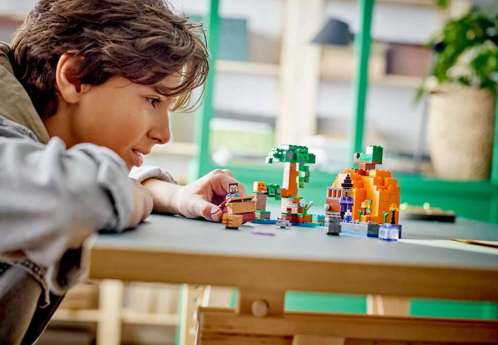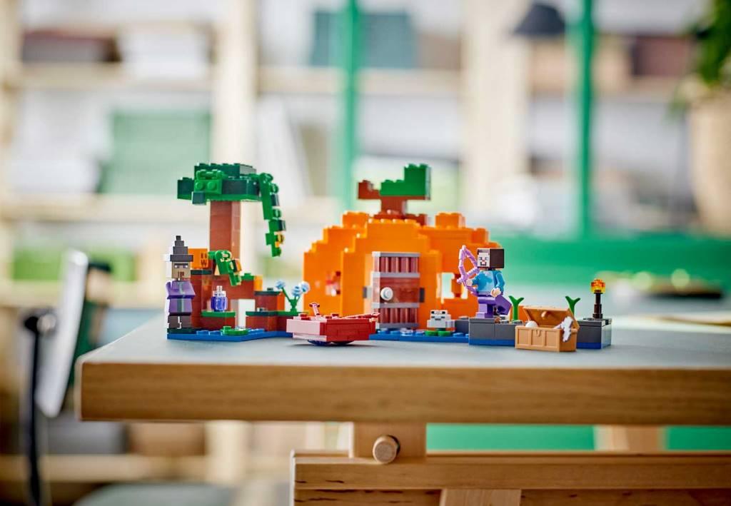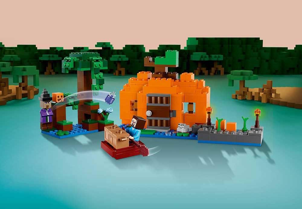 Игроки могут сделать тыкву центром игры с помощью конструктора. Этот универсальный игровой набор с одним из самых популярных персонажей игры и беспокойной ведьмой вдохновит детей от 8 лет и старше на бесконечные приключения на тыквенной грядке. Дети могут построить дом в форме тыквы, ухаживать за тыквенным участком, сражаться с ведьмой, швыряющей зелья, управлять лодкой и комбинировать ингредиенты, чтобы приготовить тыквенный пирог.