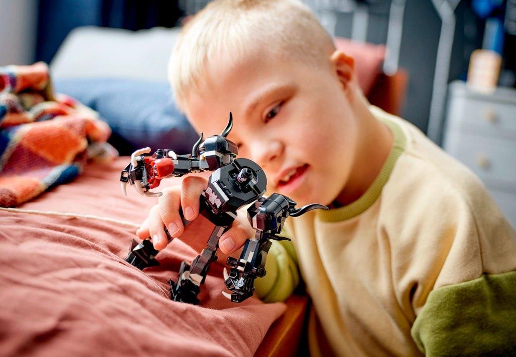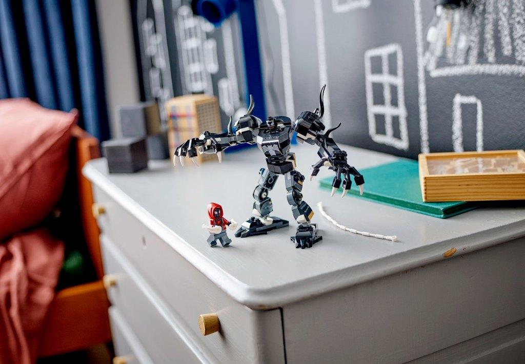 Погрузитесь в мир супергероев с этим конструктором! Из деталей набора вы сможете собрать подвижного робота. Его когти готовы к бою, а кабина открывается, чтобы минифигурка Венома могла поместиться внутрь и начать свой поход за победой. Майлз Моралес не отстает! С двумя шутерами и гибкой паутинной "веревкой", которую можно закрепить вокруг Венома, он готов к любым испытаниям. В комплект входят 2 минифигурки: Веном и Майлз Моралес. А какие приключения придумаете вы? Будет ли Веном побежден, или Майлз Моралес окажется в ловушке? Фантазируйте вместе с конструктором! Размер модели в высоту в собранном виде составляет 13 см.
