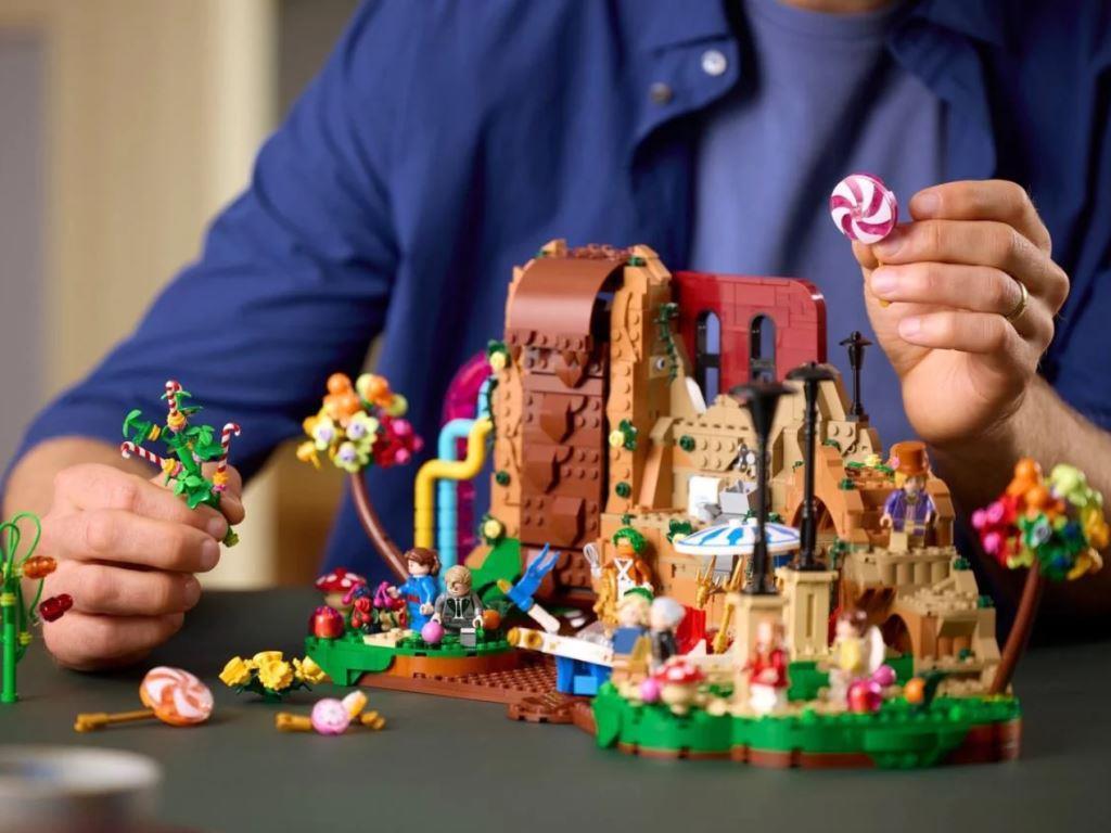 Представьте, что перед вами распахнулись ворота легендарной шоколадной фабрики — той самой, где деревья сделаны из леденцов, река течёт шоколадом, а в воздухе вечно витает аромат свежей карамели. Именно такое путешествие ждёт вас с коллекционным конструктором! Собрав модель, вы создадите не статичную диораму, а живой механизм чудес: Шоколадная река с вращающимся водопадом. Поверните диск — и «шоколад» заструится по разноцветным трубам, отбрасывая блики на окружающие декорации Лодка Вонкатания — ваше транспортное средство для экскурсии по фабрике Кабинет Вилли Вонки с потайной дверью Производственный цех, где кипит работа. Здесь можно «увидеть», как рождаются леденцовые деревья и чайные чашки на стеблях Зона Умпа‑Лумпов — сердце фабрики. Маленькие помощники снуют между станками, напевая свои поучительные песенки Демонстрационные площадки, украшенные конфетными растениями: деревья из карамельных тростей, кусты из мармелада и цветы из сахарной глазури В комплект входят 9 минифигурок: Вилли Вонка — в фирменном фиолетовом пальто и высокой шляпе. Его лицо передаёт ту самую загадочную улыбку, от которой мурашки по коже Чарли Бакет — скромный мальчик с широко раскрытыми от восторга глазами. Его простая одежда подчёркивает искренность и доброту Дедушка Джо — бодрый старик с седыми волосами и озорным взглядом. Готов разделить с Чарли любое приключение Август Глуп — с «шоколадным» отпечатком на лице, напоминающим о его неуёмном аппетите. Кажется, он уже приглядывается к ближайшей конфетной ветке Майк Тиви — юный техноман, чей образ точно воспроизведён Верука Солт — капризная принцесса в элегантном наряде. Её поза и выражение лица кричат: «Я хочу это немедленно!» Виолетта Бьюргард — чемпионка по жеванию жвачки Два Умпа‑Лумпа, чьи яркие костюмы и характерные лица добавляют сцене динамики Этот набор — дань уважения классическому фильму 1971 года. Он создан для тех, кто помнит восторженные взгляды детей с Золотыми билетами.