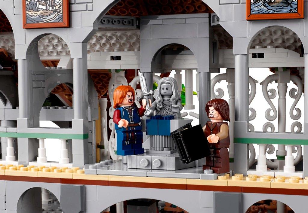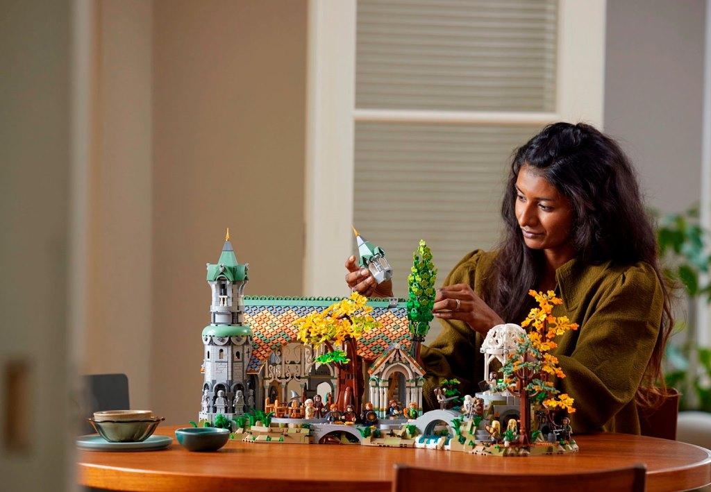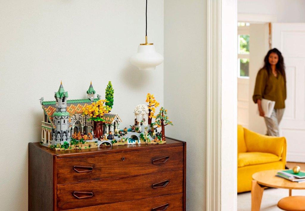 Коллекционный набор “Властелин колец” подарит фанатам киносаги и книг уникальную возможность воссоздать часть эльфийского замка Ривенделл в Средиземье. Когда-то давно Элронд Полуэльф создал здесь убежище, чтобы укрыться от злых чар Саурона. С комплектом “The Lord of the Rings: Rivendell” вы сможете воссоздать знаменитый момент из фильма – Совет у Элронда, с которого и началось великое путешествие Фродо Бэггинса и его друзей в Мордор, чтобы уничтожить Кольцо Всевластия. Для воспроизведения сцены есть не только идеальные декорации: круглый открытый зал под массивным деревом с восемью креслами и квадратным столом; но и важные персонажи, участвовавшие в Совете. Как и подобает эльфийскому замку, внутри мы видим пышное убранство: украшенные коридоры, картины и карта Средиземья в кабинете Элронда, а также постамент с осколком меча Нарсила. Одна из комнат – спальня Фродо, в которой его излечивает Элронд, позволит разыграть сцену беседы молодого хоббита со своим дядюшкой, Бильбо Бэггинсом, который поделится мудростью и ценными советами с племянником. Замок нельзя представить без оружейной: здесь мы найдем набор совершенно новых деталей оружия, горн и наковальню. Снаружи Ривенделл украшен пятью статуями эльфов-воинов у подножия башни, а также обильной листвой и зеленью, которые создают ощущение, будто вы находитесь глубоко в лесу Ривенделл. Белоснежная узорчатая беседка в саду напоминает о важном разговоре Галадриэль и Гендальфа задолго до Совета у Элронда. На каменном мосту через реку в саду прощались Арвен и Арагорн перед длительным путешествием в Мордор, в которое отправится Братство кольца. Набор “Властелин колец: Ривенделл” полон отсылок к фильмам и книгам, приятными мелочами и редкими новыми деталями и аксессуарами. Разыгрывайте любимые сцены из фильмов с персонажами из “Властелин колец”, придумывайте собственные сценарии игры или украсьте собранной моделью свою ком